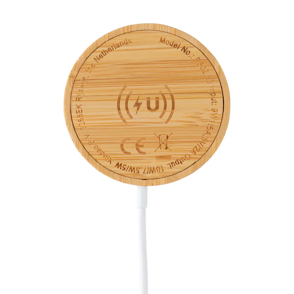 Klik deze magnetische draadloze oplader op de achterkant van uw Iphone 12 om uw apparaat op te laden. De magneten zijn perfect uitgelijnd om altijd de juiste oplaadpositie op uw telefoon te garanderen. De bamboe 10W draadloze oplader is compatibel met alle QI-apparaten (Iphone 8 en hoger en Android-apparaten), dus op andere telefoons kan hij worden gebruikt als een gewone draadloze oplader. Inclusief micro-USB-kabel van 100 cm TPE-materiaal. Artikel en accessoires PVC-vrij. Input DC 5V / 1.5A; Uitgang 5V / 1.0A (5W) 11 stuks hoogwaardige N52H hittebestendige magneten ge ntegreerd.””