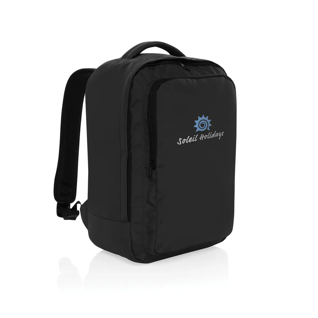De Ace Aware RPET Free On Board reispakket is ontworpen voor de budgetbewuste reiziger die gemak waardeert. Gemaakt van 100% rPET, deze compacte rugzak heeft verstelbare schouderbanden, een webbing handvat aan de bovenkant en een voorvak met rits voor snelle toegang tot je essenti le spullen. Het hoofdcompartiment bevat een elastische trolleyband voor extra functionaliteit, en met een capaciteit van 19L past het onder elke vliegtuigstoel. Perfect voor weekendtrips, deze rugzak voldoet aan de maximale gratis handbagage-eisen van budgetmaatschappijen, waardoor je geen extra kosten voor je tas hoeft te betalen. Gemaakt met gerecycled polyester met de AWARE tracer. 2% van de opbrengsten van elk verkocht product met AWARE wordt gedoneerd aan Water.org. PVC-vrij.””
