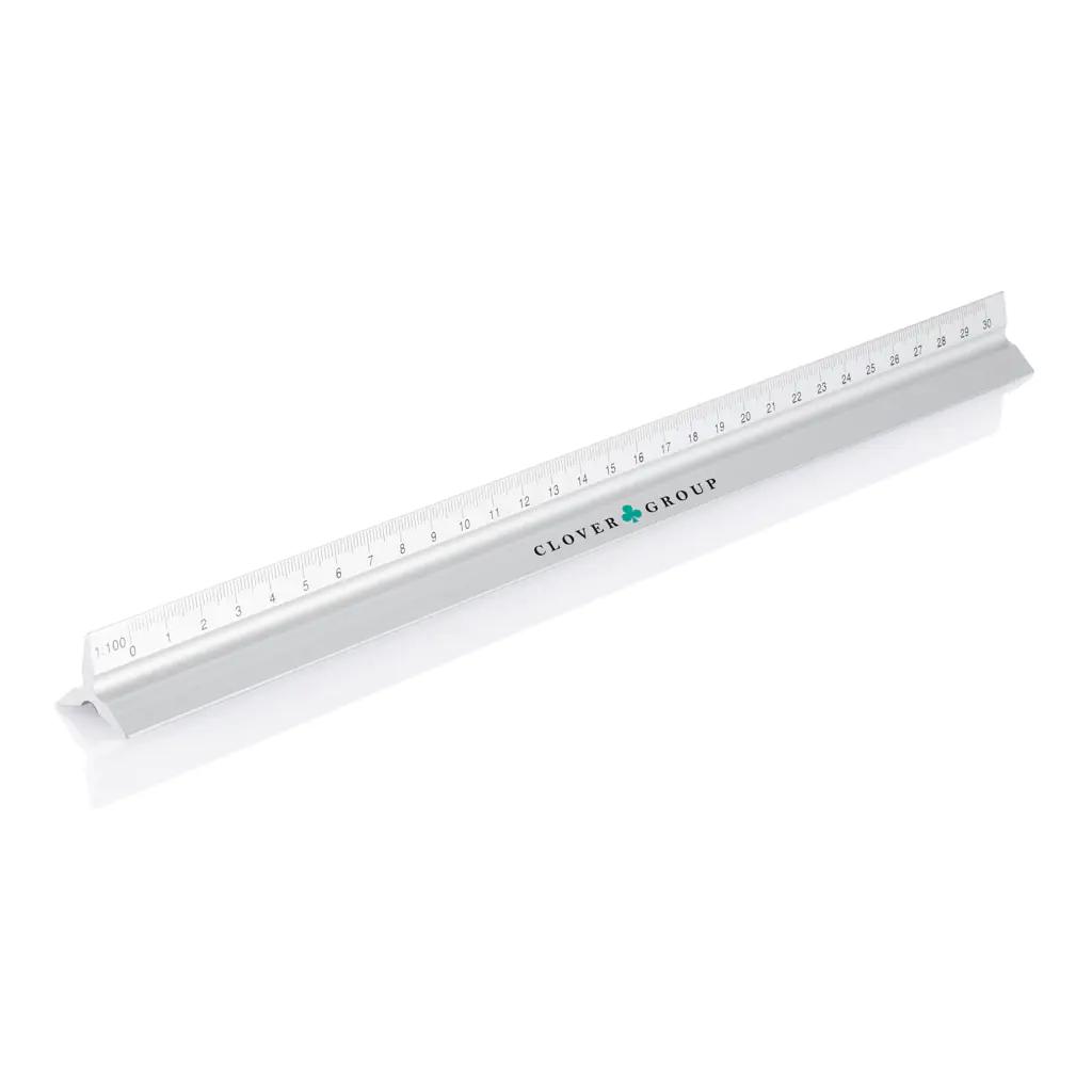 Aluminium driehoeks liniaal met 5 verschillende schalen: 1:20, 1:25, 1:50, 1:75 en 1:100.””