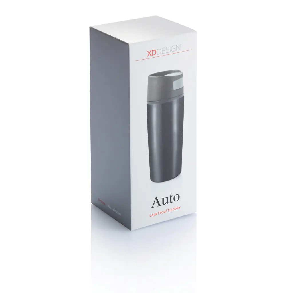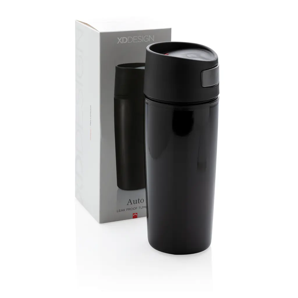 Auto is een 300ml mok met zwart PP coating en een innovatief duwsysteem zodat bediening met slechts n hand mogelijk is. Ideaal in de auto. Geregistreerd ontwerp “”