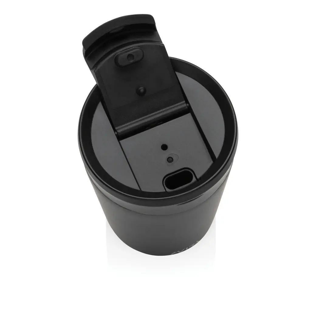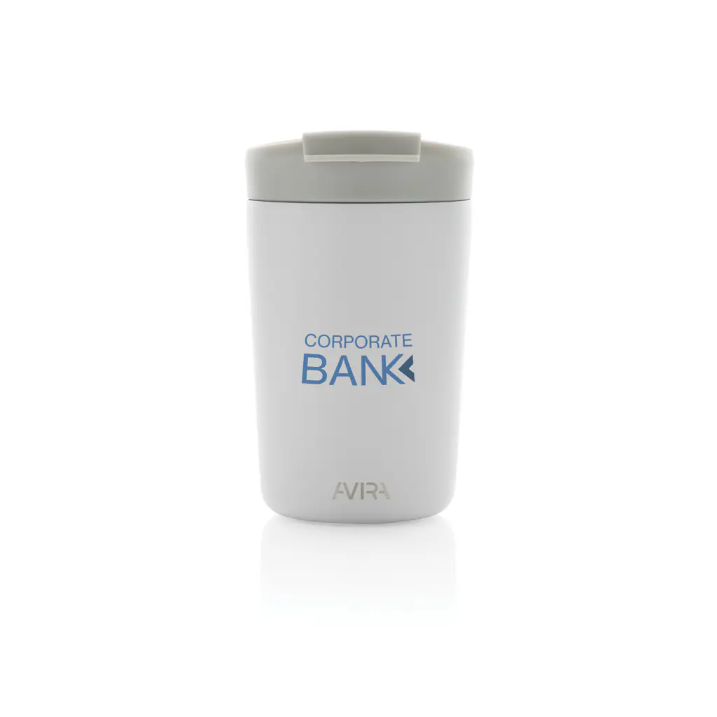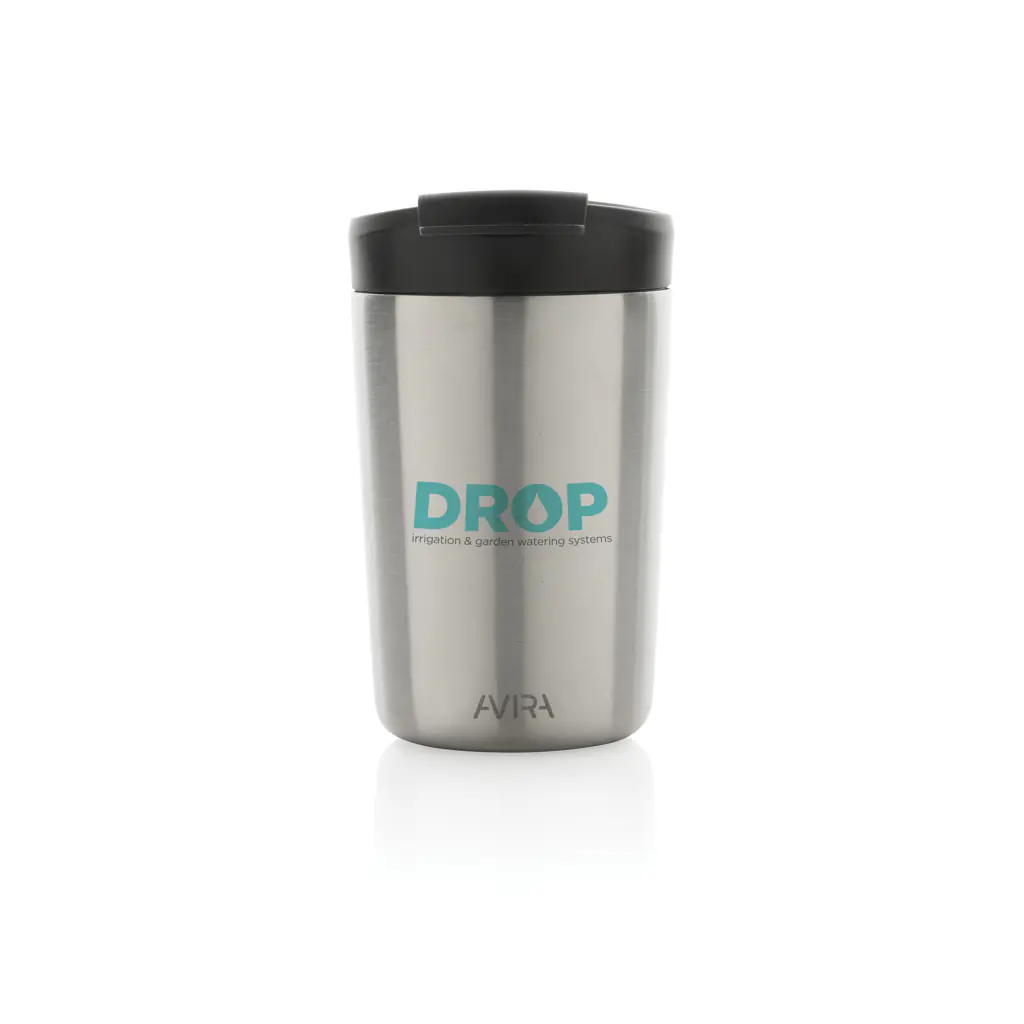 Hydrateer jezelf in stijl met onze strak ogende Alya-beker. De dubbelwandige, vacu mge soleerde roestvrijstalen behuizing houdt je favoriete drankje 6 uur warm en verfrissend water 8 uur gekoeld. De onderkant is voorzien van een antislip siliconen pad. Gemaakt van RCS-gecertificeerd gerecycled roestvrij staal. RCS (Recycled Claim Standard) is een norm om de gerecyclede inhoud van een product in de hele toeleveringsketen te verifi ren. Totaal gerecycled materiaal: 71% op basis van het totale gewicht van het item. BPA-vrij. Capaciteit 300ml. Inclusief FSC -gecertificeerde kraftverpakking. Gooi de doos niet weg, maar hergebruik de doos in een telefoonhouder, potloodhouder of bloempot! 2% van de opbrengst van elk verkocht product wordt gedoneerd aan Water.org.””