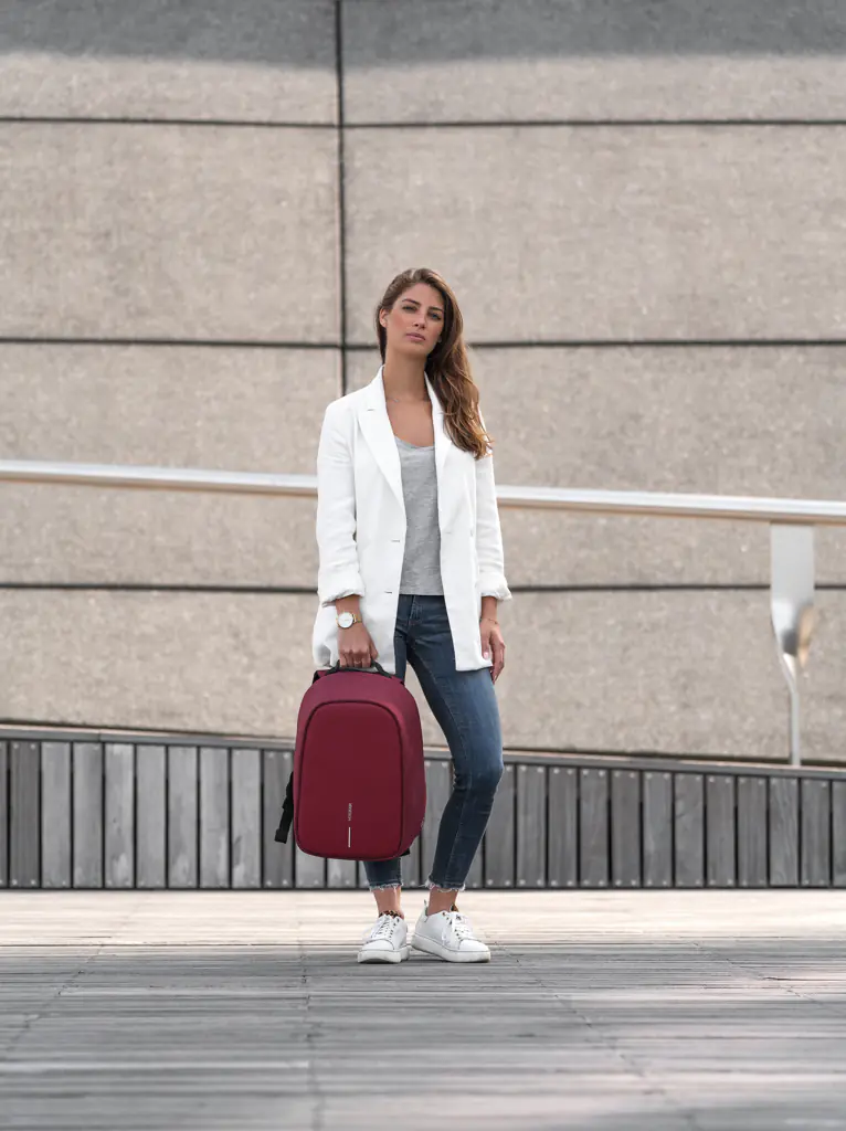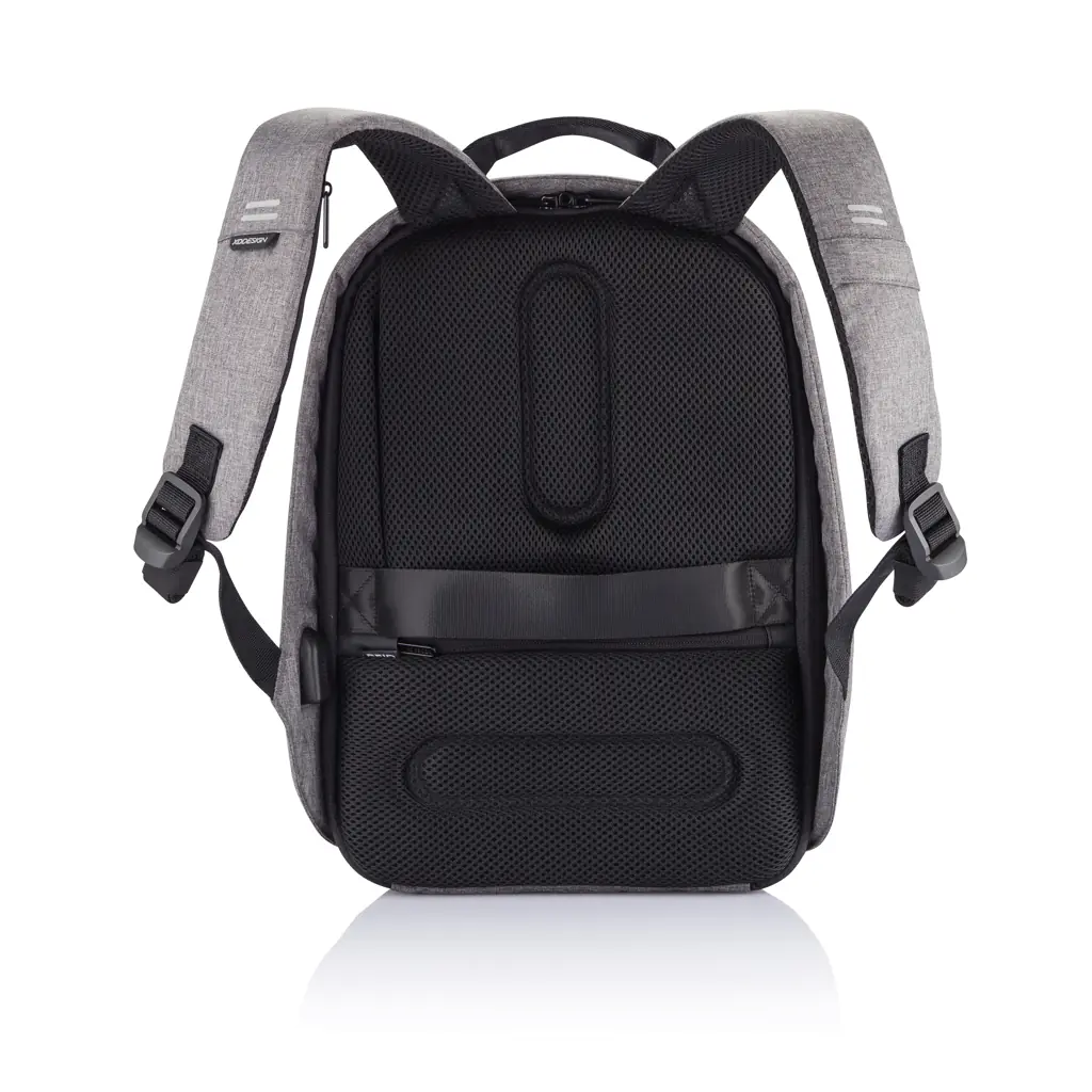 De Bobby Hero lijn is onze nieuwe generatie anti-diefstal rugzakken. Dit nieuwe model helpt u om altijd veilig, zorgeloos en georganiseerd te reizen. Het snijvaste en waterafstotende materiaal waar de tas van gemaakt is en de verborgen ritssluitingen & zakken houden uw spullen veilig terwijl u onderweg bent. Bobby Hero is ook een heel handige rugzak met functies zoals een ge ntegreerde USB-laadpoort, oplichtende veiligheidsstrips en een bagageband. Aan de binnenkant zitten gewatteerde compartimenten voor een 13,3″ laptop, tablet tot 12,9″ en al uw andere spullen. De rugzak is gemaakt van 22 rPET (gerecyclede PET-flessen). Geregistreerd ontwerp “”