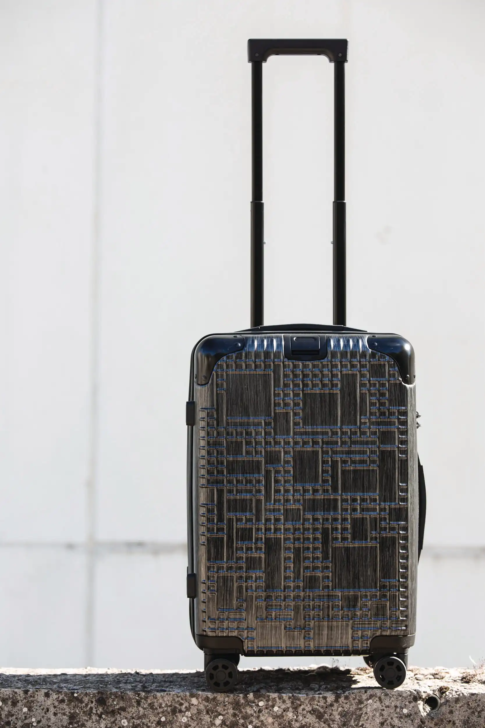 100% polycarbonaat. Cabin size trolleytas. Deze trolley van aluminium, met een origineel design dat het reliëf van de Pico de Aneto in de Pyreneeën voorstelt, kreeg 4 zwenkwieltjes en beschermingspootjes aan de zijkant om de koffer op zijn zijkant te kunnen plaatsen.De hoeken zijn gemaakt van rubber, voor een betere bescherming. Voor meer comfort uitgerust met: bovenaan een verlengbare handgreep en opzij een handgreep, een uittrekbare riem aan de voorkant om een aktetas te vervoeren, twee binnenvakken waarvan één met een bevestigingsriem en een andere met een ritssluiting en zakken voor accessoires.Voor uw veiligheid werd deze trolley uitgerust met een TSA-cijferslot.