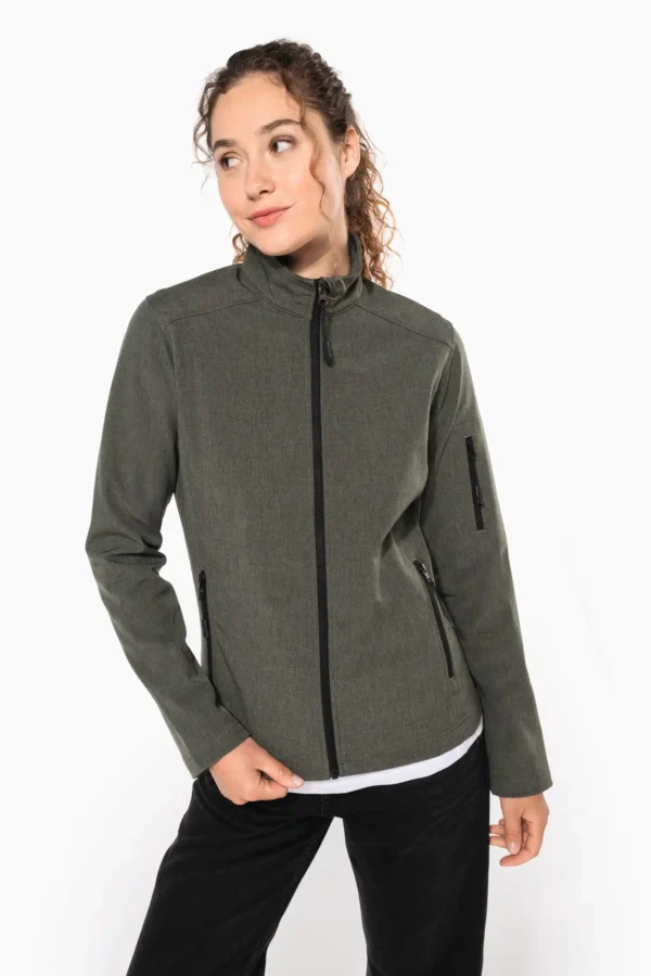 95% polyester / 5% elasthan. Stof in 3 lagen aan elkaar geklit, ademend 3000 g/m2/24H en 8000 mm waterdicht. Buitenkant: 95% polyester / 5% elasthan. Tussenlaag: ademend membraan. Binnenkant: microfleece. Getailleerde snit. Ritssluiting. Zakken met rits aan de voorkant. 1 zak met rits op de linkermouw.