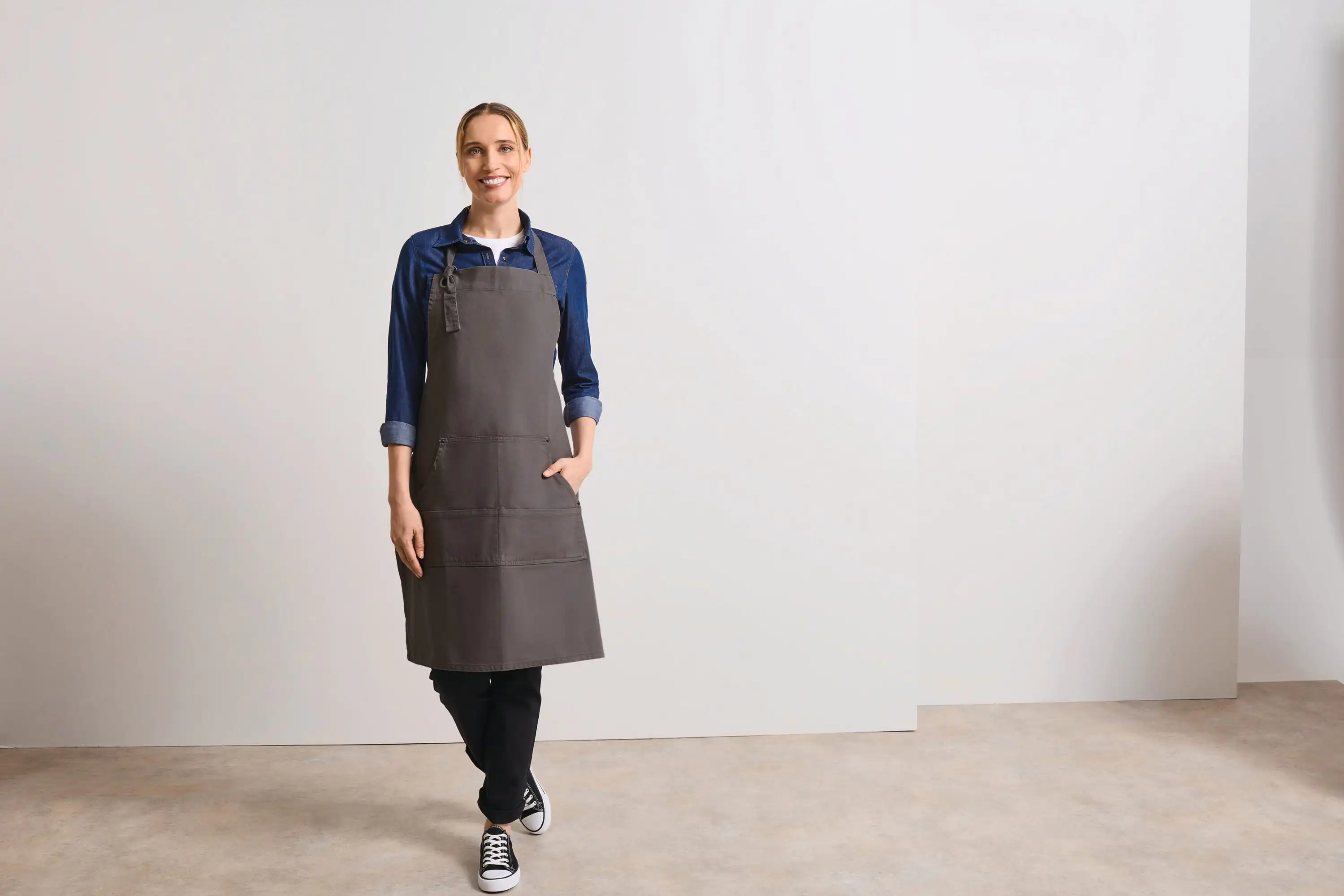 100% katoendenim en acryl. Geolied effect. De details in contrasterende stof zorgen voor een hoogwaardige afwerking die degelijkheid en stijl verenigt, terwijl de details in imitatieleer deze schort een uitstraling geven die tegelijk authentiek en luxueus overkomt en in veel zaken populair is. Waterafstotend oppervlak dankzij het geoliede effect. Inzetsels in contrasterende stof zorgen voor functionaliteit en stijl. Linten aan taille en hals in imitatieleer. Halslint met aanpasbare gesp. Effect van gekleurd denim dankzij de kleurgeweven draden. Lengte: 86 cm. Breedte: 72 cm.
