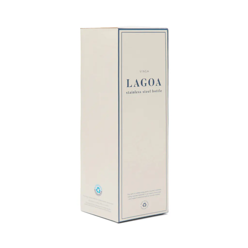 De fles is vervaardigd uit RCS-gecertificeerd gerecycled roestvrij staal en afgewerkt met een klassiek tweekleurig streeppatroon en een strakke witte siliconen handgreep. Dit zorgt niet alleen voor een tijdloze uitstraling, maar ook voor extra draagcomfort.