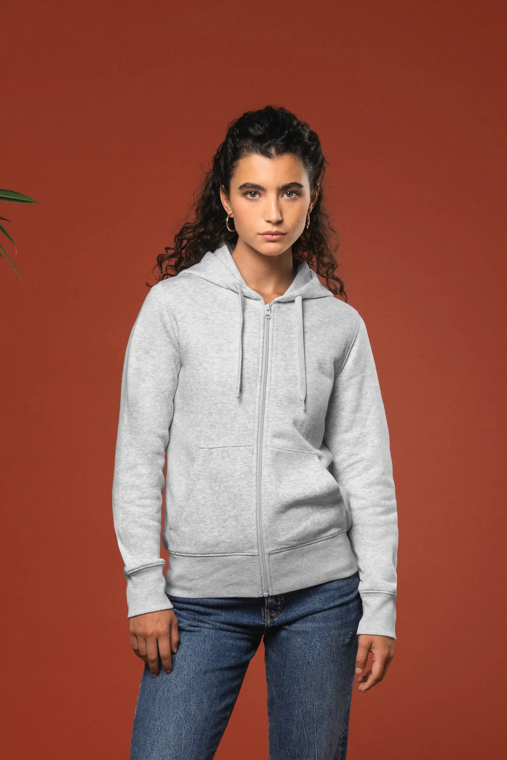 85% katoen / 15% polyester. Gemaakt van 85% biologisch katoen en 15% gerecycled polyester. Buitenoppervlak 100% katoen. Geborsteld fleece 3 draden LSF (Low Shrinkage Fleece) aan de binnenkant. Gekamd katoen. Enzymgewassen. Rechte snit. Kangoeroezakken. Ritssluiting in toon-op-toon nylon. Gevoerde capuchon 100% katoen, jerseykatoen 180 g. 1×1 ribboord in buisconstructie voor een betere afwerking aan de mouwuiteinden en de onderkant. Nektape in toon-op-toon jersey en halvemaanvormige afwerking aan de binnenkant van de kraag. Afwerking dubbel stiksel aan mouwuiteindenn, onderkant en hals. Geen merklabel in de kraag, maar enkel een maatlabel voor eenvoudige personalisatie.