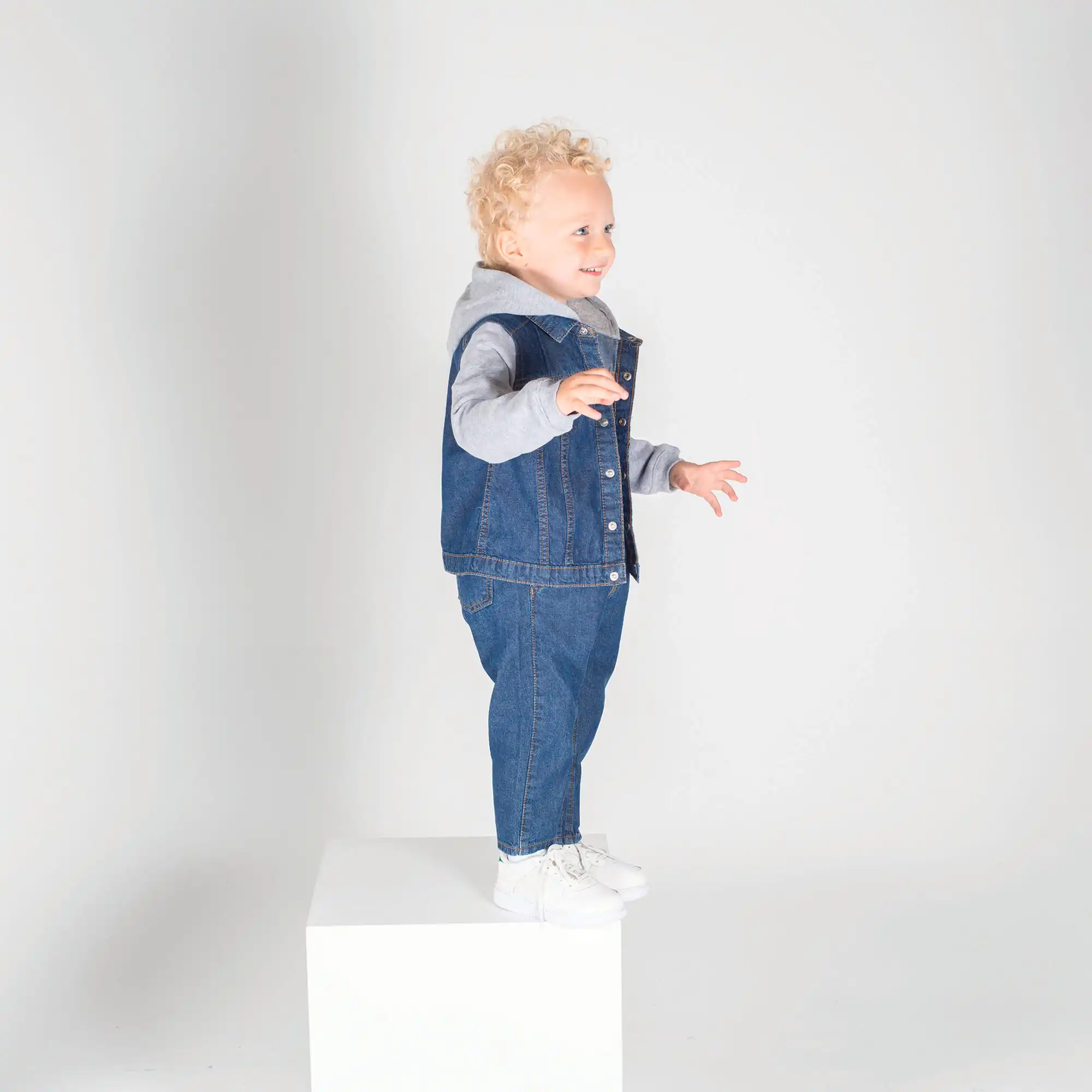 60% geregenereerd katoen / 40% gerecycleerd polyester. Sweater gemaakt van een duurzame stof. V-vormige flatlocknaden aan de halsopening. YKK-drukknopen op de schouder (behalve voor 3/4 jaar en 5/6 jaar).