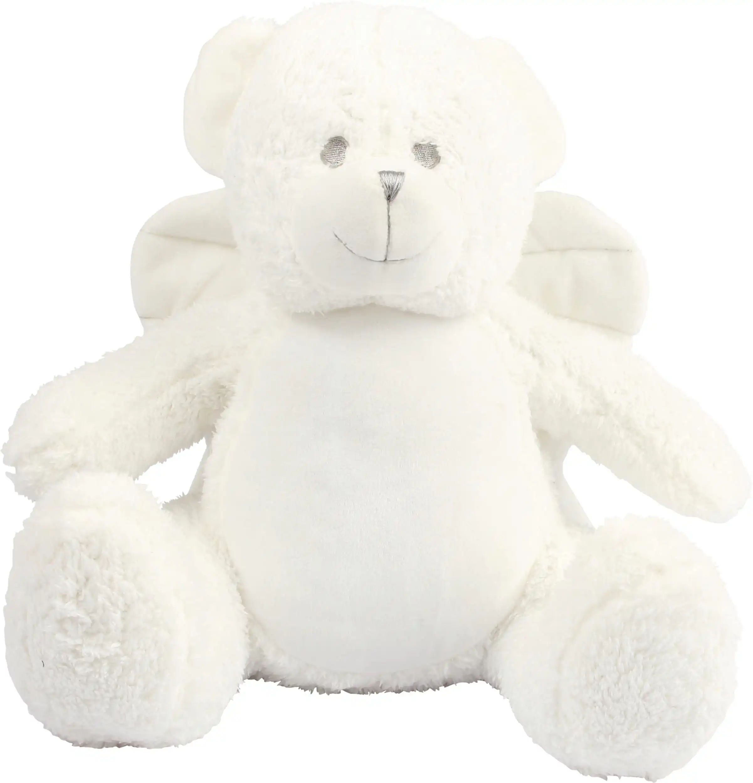 Pluche 100% polyester. Contrasterende ogen en mond. Vleugels in crèmekleurige stof. Crèmekleurig paneel op de buik. Ritssluiting en uitneembare vulling voor gemakkelijke decoratie. Hoogte 42 cm. Voldoet aan de Europese norm EN71 voor veilig speelgoed. Geschikt voor alle leeftijden.