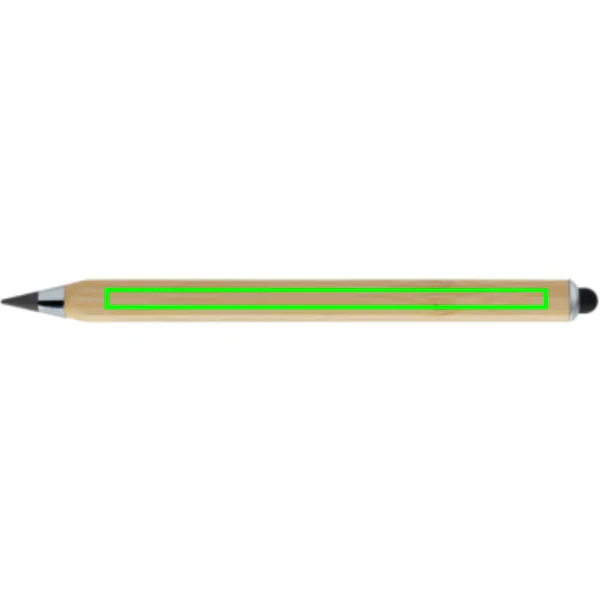Moderne oneindige pen gemaakt van FSC 100% gecertificeerd bamboe. Driehoekig gevormd model met n zijde met CM-aanduiding en n zijde met Inches. Traditionele houten potloden schrijven slechts tot ongeveer 200 meter, maar deze boomvrije infinity potlood heeft een schrijflengte van tot wel 20000 meter met behulp van een grafietpunt om een grafietlijn te produceren. Het schrijft niet alleen als een potlood, maar de markeringen kunnen ook worden uitgeveegd. Het werkt door een grafietlijn op papier achter te laten, net als een gewoon traditioneel houten potlood, maar het slijt zo langzaam dat het tot wel 100 traditionele houten potloden zou moeten overleven! Met touch-tip om mobiele apparaten te bedienen. Verpakt in FSC -mix verpakking.””
