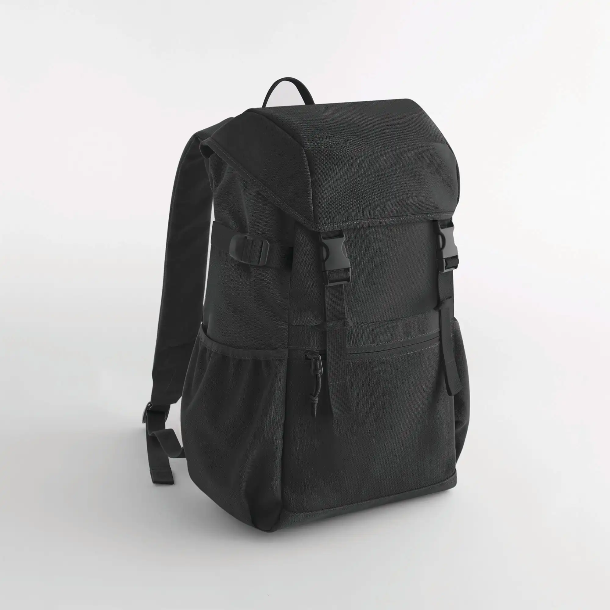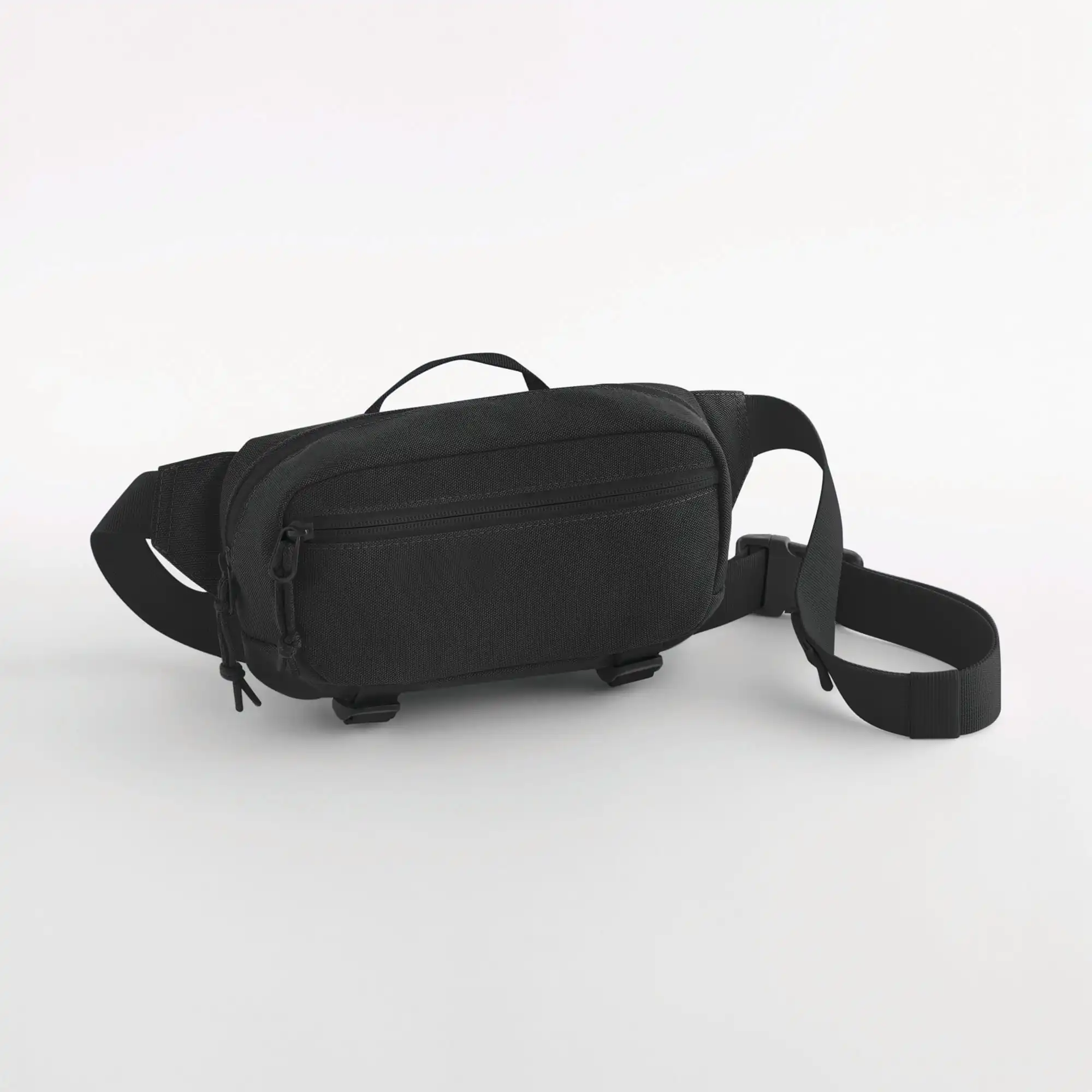 100% gerecycled polyester, GRS-gecertificeerd. Hoofdvak met ritssluiting. Voorvak met ritssluiting. Binnenhaak voor sleutels. Binnenvak met ritssluiting. Stevige koordtrekkers. Verstelbare heupband met gesp. Draaggreep. Twee zijdelingse compressieriemen. Afneembaar label voor eenvoudig rebranding.