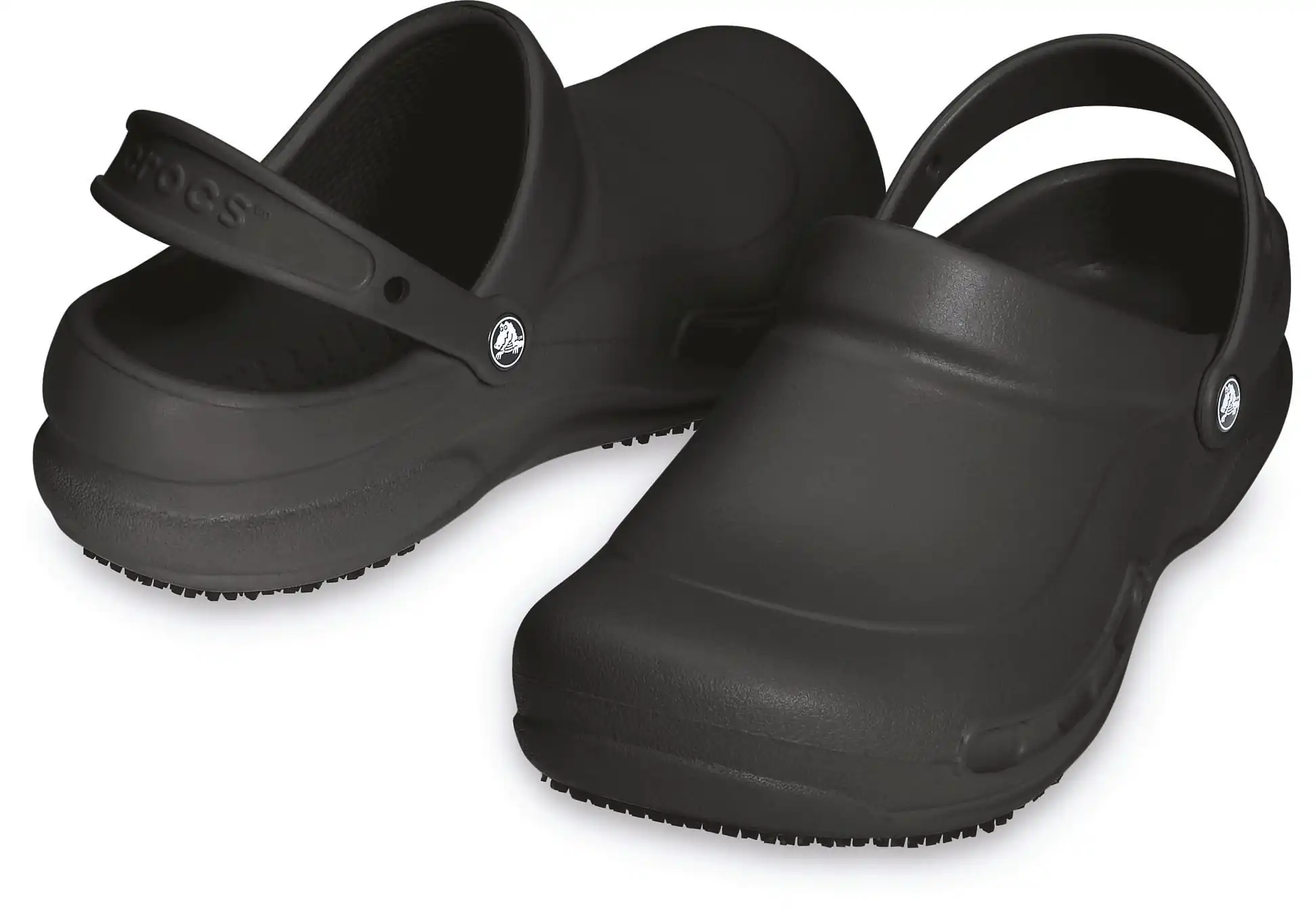 Comfortabele clogs voor personeel in restaurants, hotels en de gezondheidszorg. Met hun antislipontwerp en extra teenbescherming geven de Crocs™ Bistro uw voeten alles wat ze nodig hebben op de werkvloer! Dit model met een Crocs Lock™ antislipzool is volledig gegoten in Croslite™ hars voor een optimaal comfort, lichtheid en duurzaamheid. Het comfort wordt versterkt met een speciale vorm voor de voetboog en een Croslite™ hielband waarmee de schoen goed blijft zitten. Een gesloten ontwerp vooraan en een dikker metatarsaal gebied beschermen de bovenkant van de voet tegen gemorste vloeistoffen. Gemakkelijk schoon te maken met water en zeep en snel droog. CE-markering en ASTM F2913-11-getest. Conform aan de norm EN ISO 20347:2012 OB SRC.