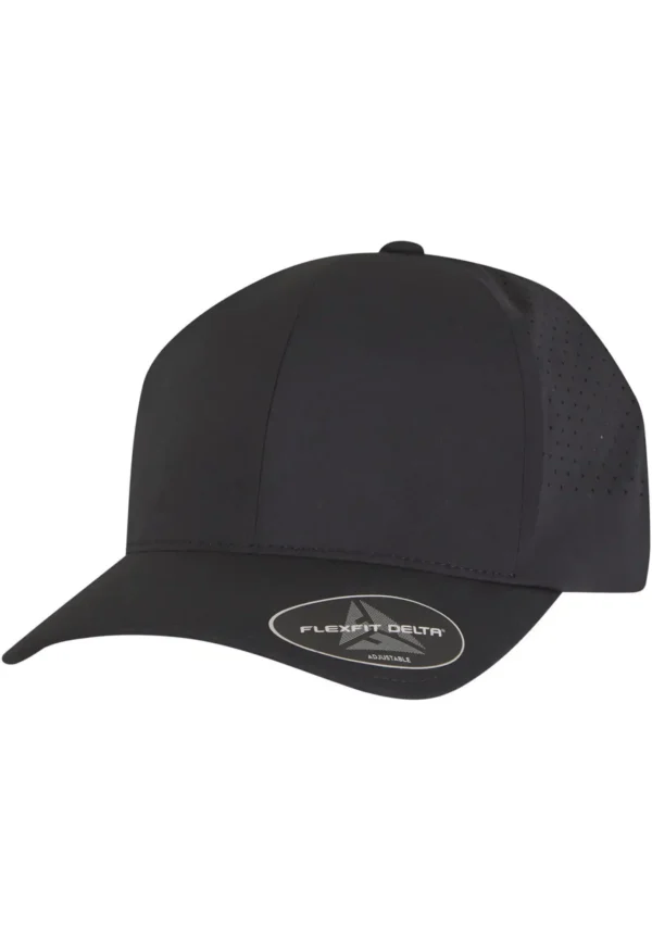 92% Polyester / 8% PU Spandex. De Flexfit Delta® pet combineert een snapback-sluiting, laserperforaties voor extra comfort en de Stain-Block technologie tegen zweet. Het is gestructureerd met 6 panelen en heeft een zwarte of witte klep, afhankelijk van het model.