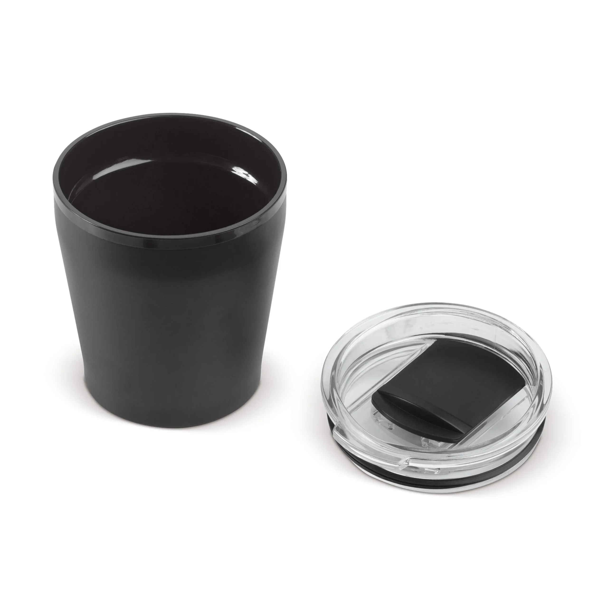 Dubbelwandige coffee to-go beker. Dit model past onder elke koffiemachine en omdat het een dubbelwandige beker is, houdt het dranken goed op temperatuur.