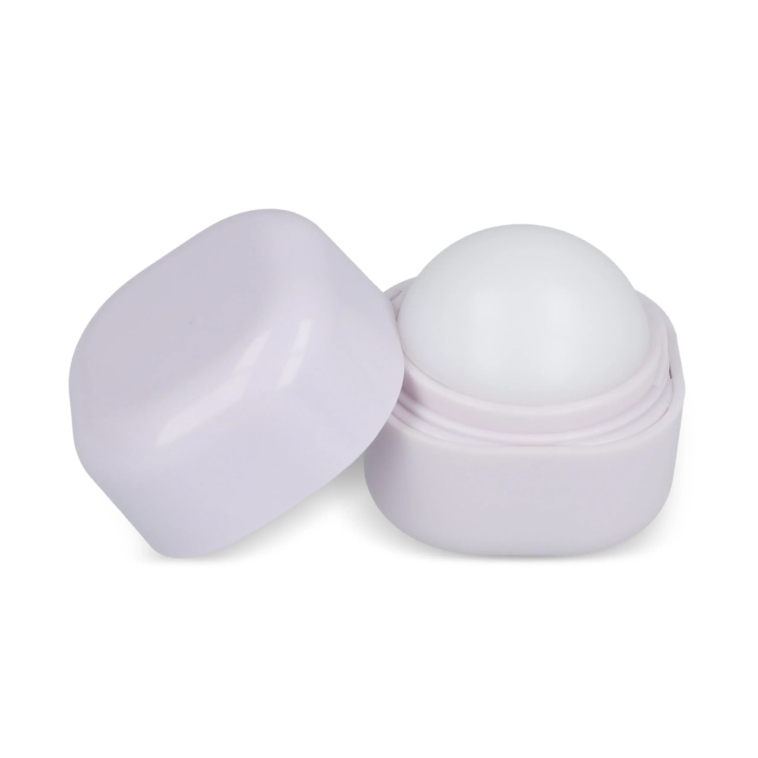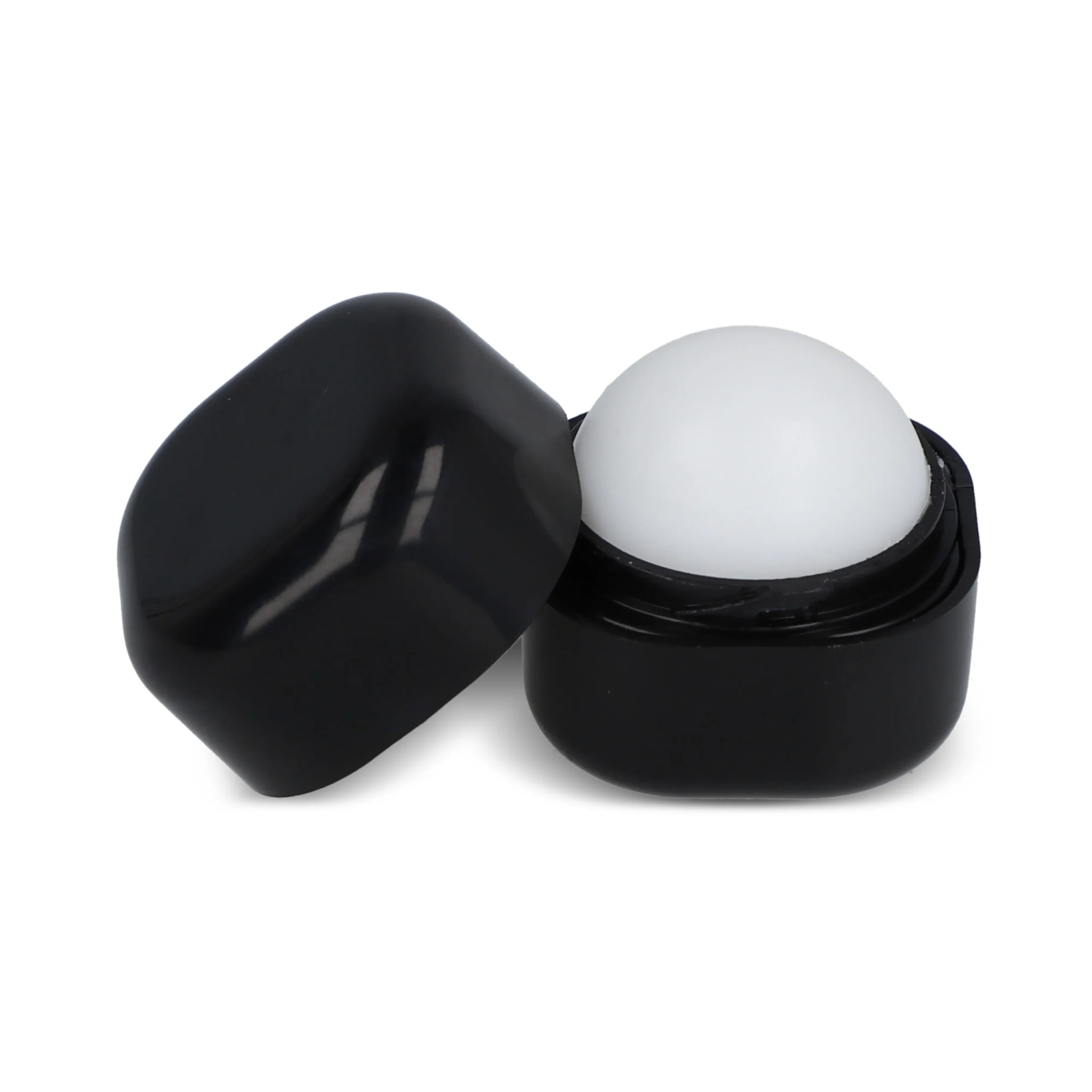 Lippenbalsem in een kubusvormig potje gemaakt van gerecycled ABS. De ronde balvorm binnenin zorgt voor een gladde applicatie voor hydraterende verzorging.