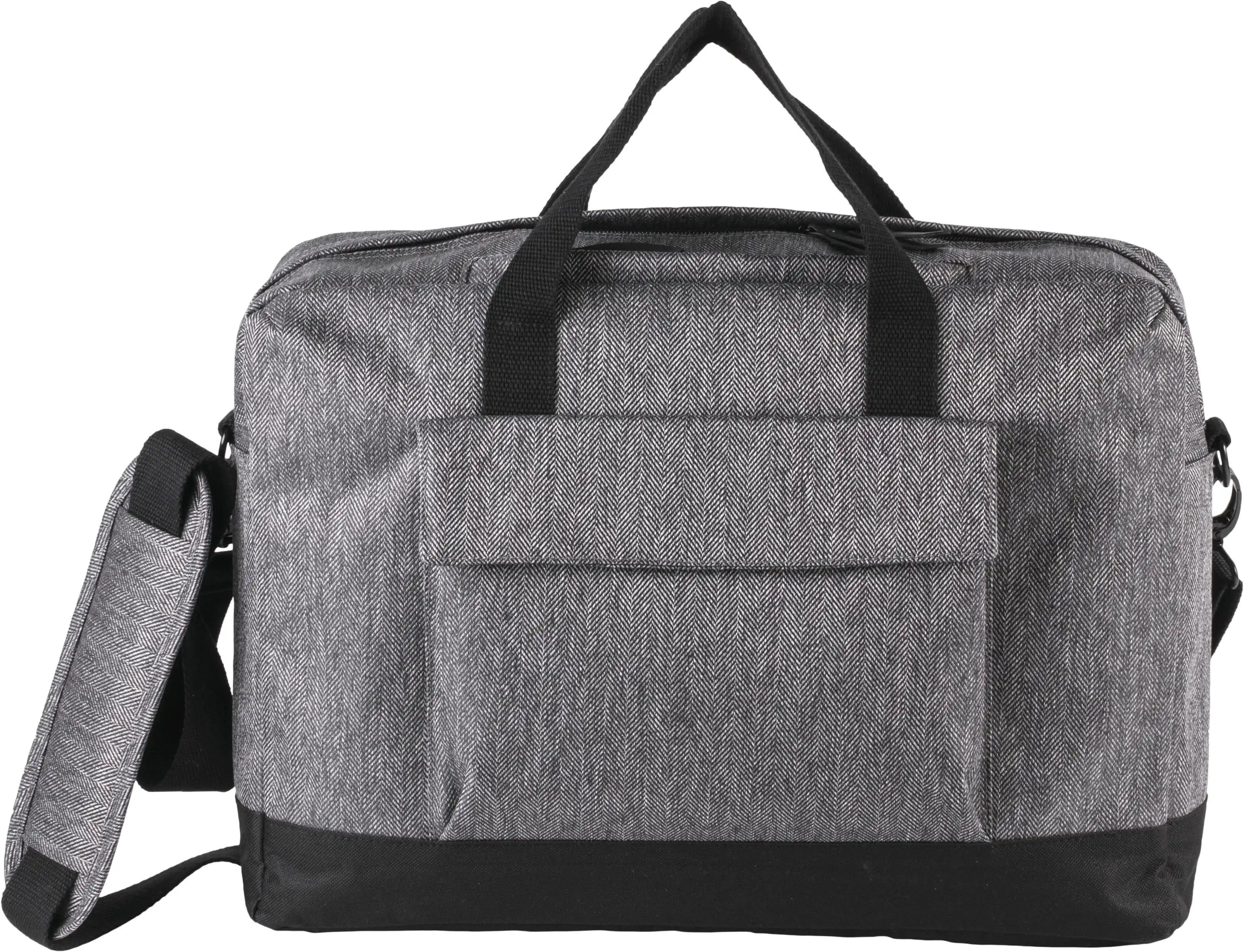 Laptoptas van 600D polyester. Bodem, hengsels en klep van polyurethaan. Gewatteerd vak voor een computer met een scherm van max. 15 inch en gewatteerde ritszak voor een tablet. 2 binnenzakken, 1 ritszak bovenaan de zak voor een gsm, 1 zak aan de voorkant met klep en drukknopen. Lus op de achterkant om een trolley aan te bevestigen, afneembare schouderriem.