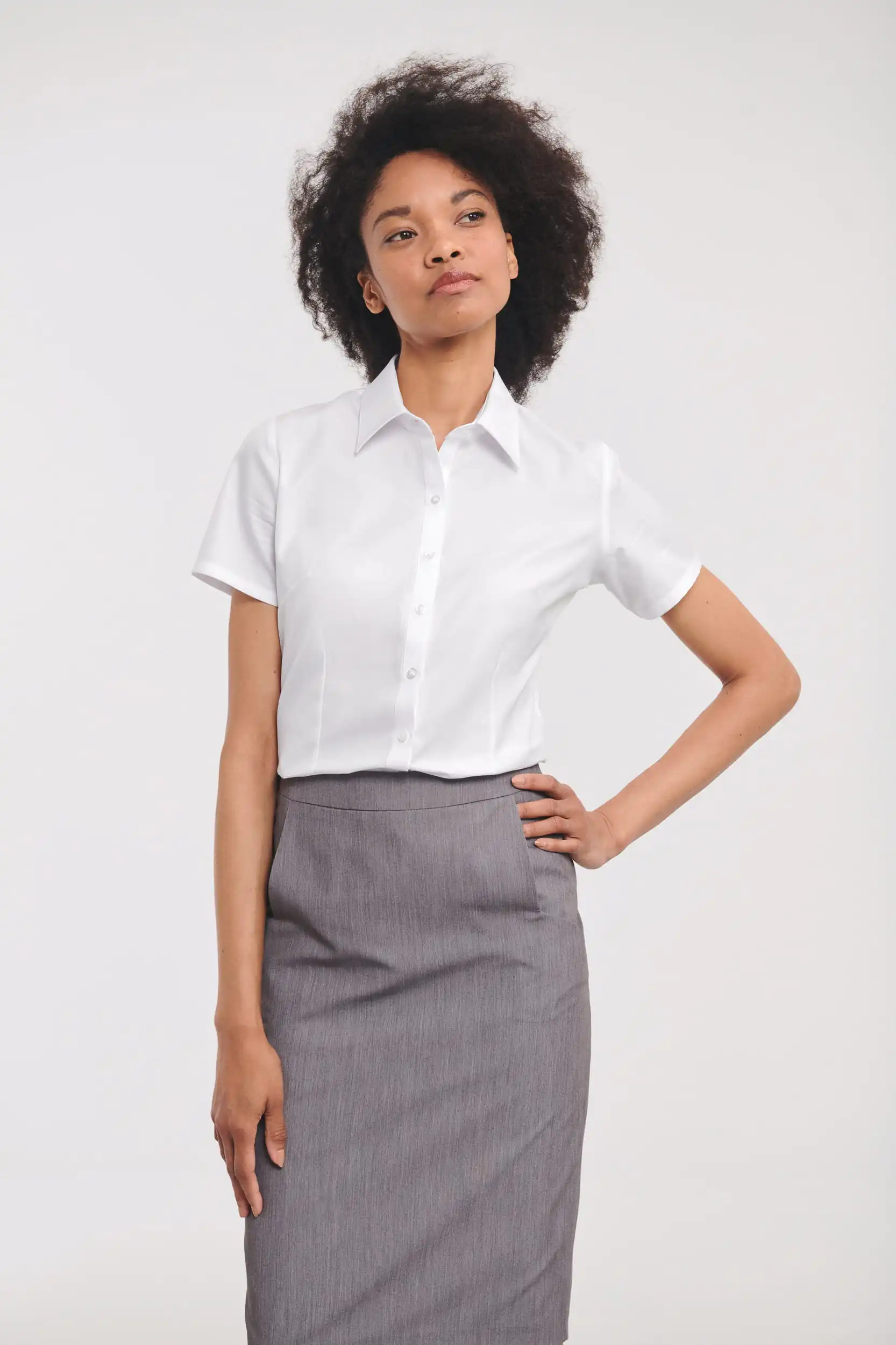 84% katoen / 16% polyester. Dit overhemd met visgraatmotief is een geschikt alternatief voor het klassieke Oxford shirt. Half bedekte kraag en korte overslag. Smalle knooplijst. Afgeronde manchetten. Getailleerde snit. EasyCare.