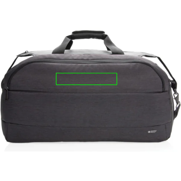 Uniek ontwerp weekendtas met een groot hoofdvak en een voorvak. Sluit uw powerbank makkelijk aan op de ge ntegreerde USB-laadpoort en laad de telefoon of tablet op onderweg. Met telefoon of waterflessen vak aan de buitenzijde en handige kaarthouder in schouderriem.