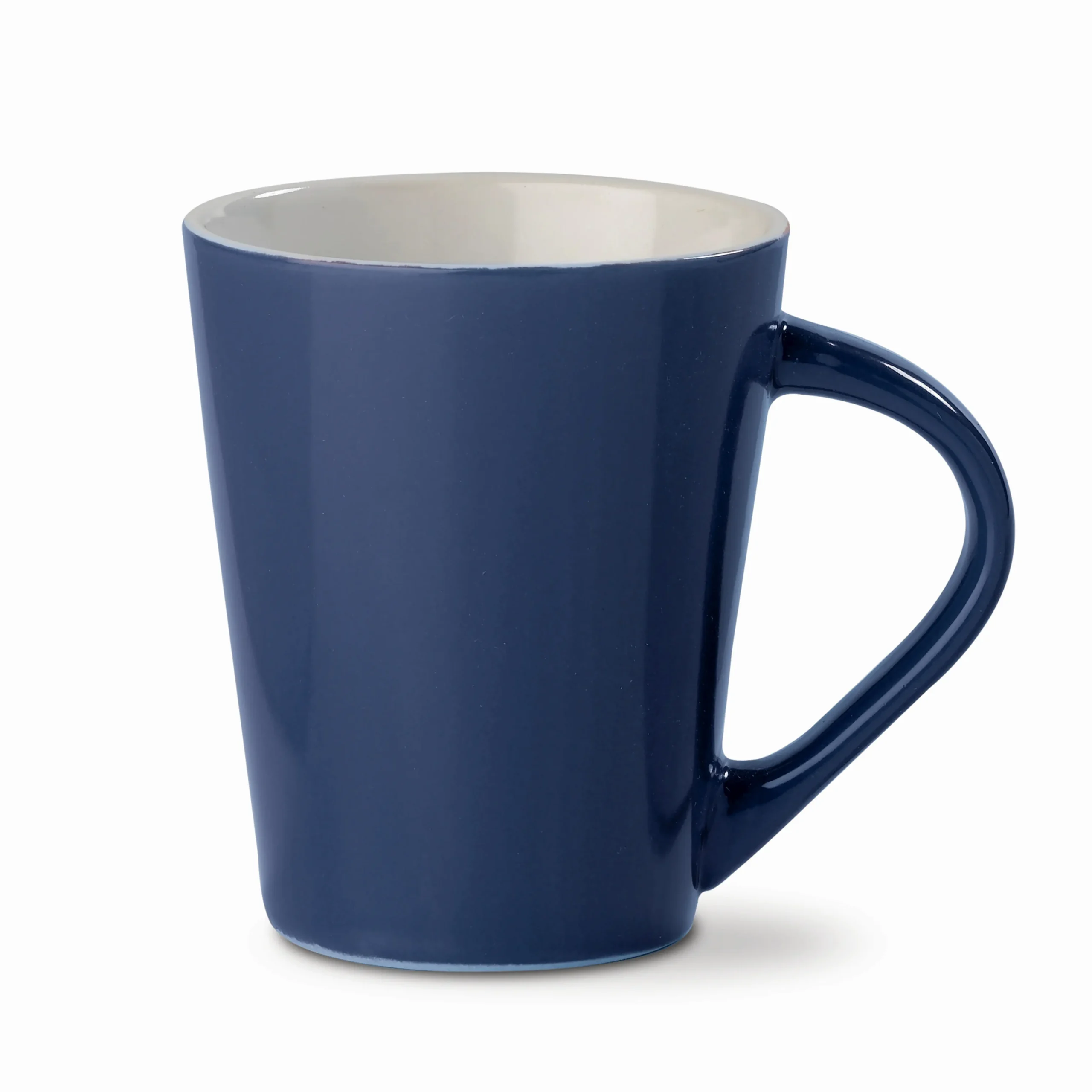 Gekleurde aardewerken mok met een conisch design.
