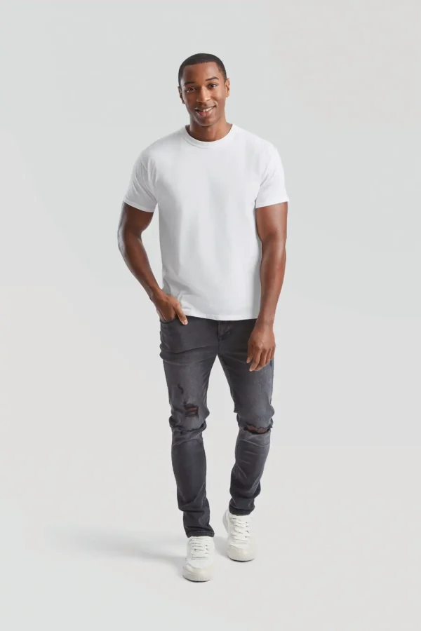 100% katoen (Heather grey: 97% katoen / 3% polyester). Ronde hals met nektape.