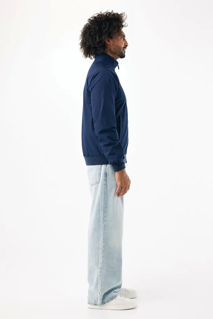 De jas is vervaardigd uit 100% gerecycled polyester en voorzien van een GRS-gecertificeerd RTPU-membraan. Het ontwerp combineert een zakelijke, casual chique look met functionele details die geschikt zijn voor dagelijks professioneel gebruik.