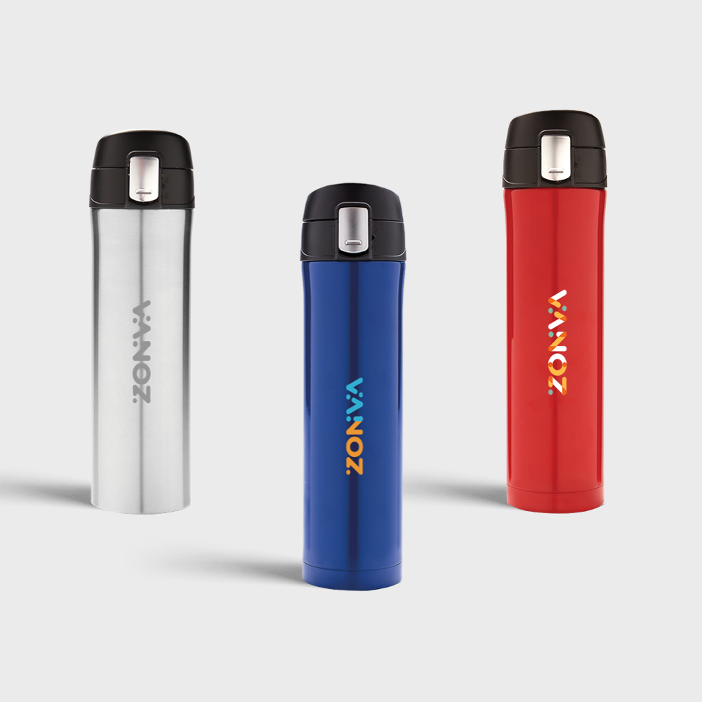 Deze compacte fles is gemaakt van gerecycled roestvrij staal en heeft een veilig schroefdeksel met een wijde opening voor eenvoudig schoonmaken en vullen. De dubbelwandige constructie houdt drankjes tot 3 uur warm of tot 6 uur koud.