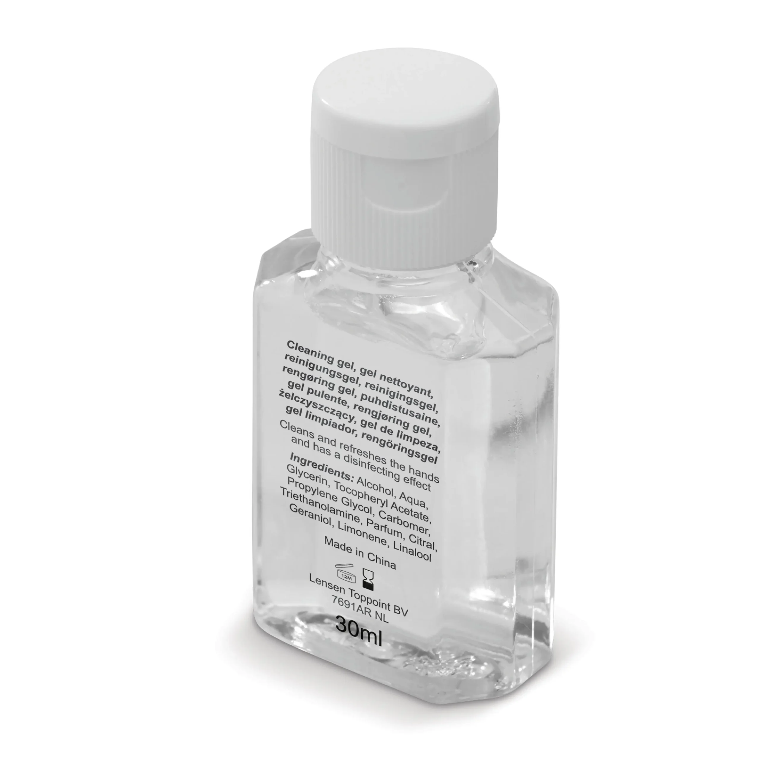 Compact flesje met reinigingsgel voor handen op basis van alcohol (62%). Het flesje past in tasjes, rugzakken, reiskoffers maar ook in de broekzak.