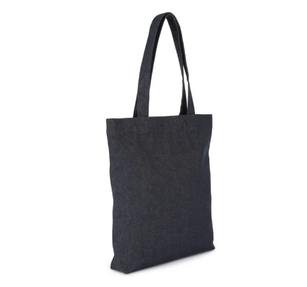 Gerecycled katoen / gerecycled polyester. 70% gerecycled katoen / 28% gerecycled polyester / 2% andere vezels. Shopper met platte bodem en hengsels van hetzelfde materiaal als de tas.Doordat het materiaal gerecycled is, vervaagt de kleur van de stof niet.