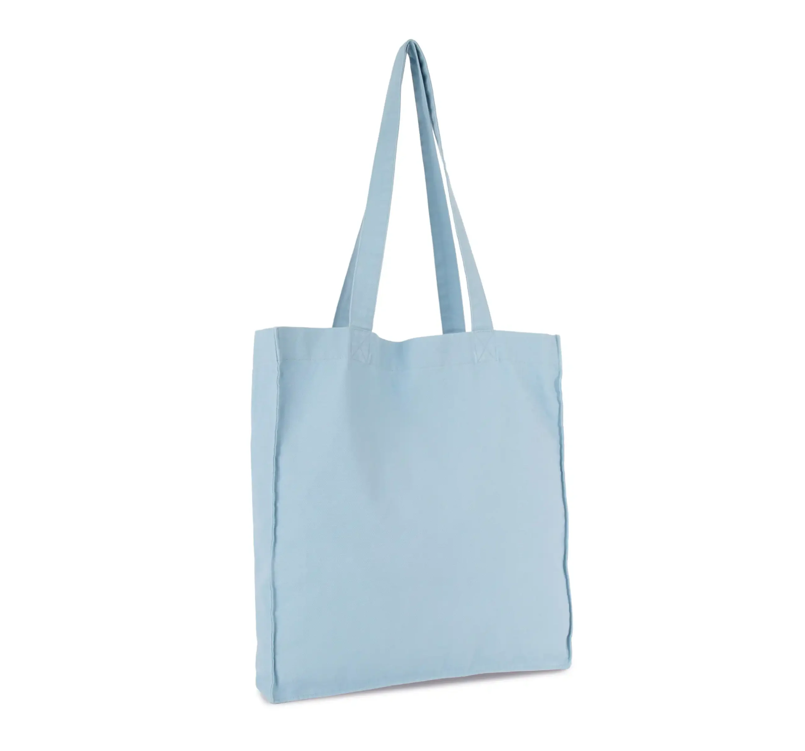 Gerecycled polyester / gerecycled katoen. 55% gerecycled polyester / 45% gerecycled katoen. Grote shopper met plooi. Made in France.