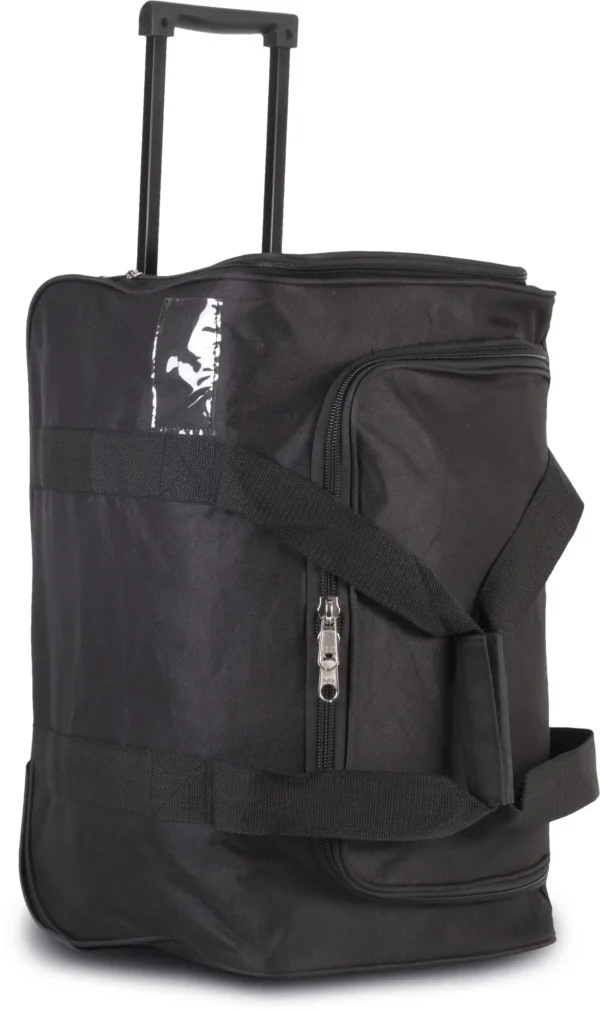 Sporttas/sports co met trolleysysteem, middelgroot formaat (55 cm), van 600D polyester. 1 zijzak met rits voor een paar schoenen, grote opening met een brede rits op de bovenkant, etikethouder voor identificatie, verstevigde hengsels met riemen van 5 cm helemaal rond de tas.