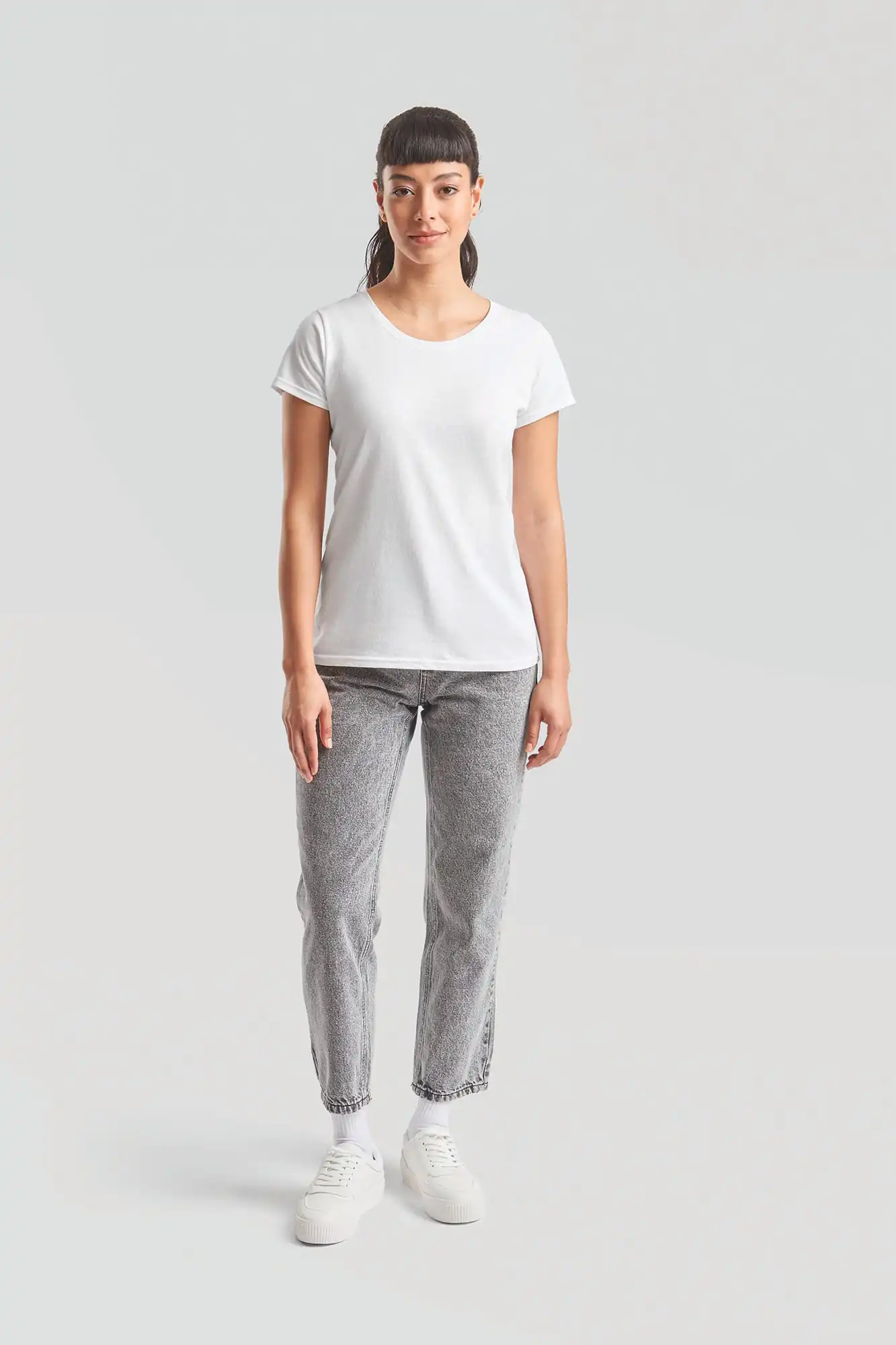 100% ringgesponnen, gekamd katoen. Fluweelachtige look. Wasbaar op 60 °C. Ronde hals met ribboord in katoen/Lycra®. Dubbel stiksel. Nektape van schouder tot schouder.