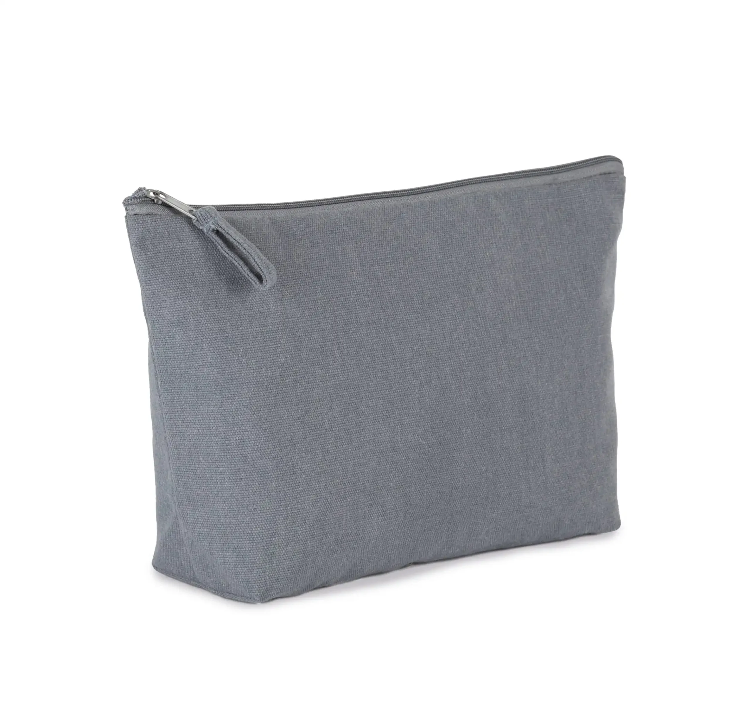Gerecycled katoen / gerecycled polyester. 70 % gerecycled katoen / 28 % gerecycled polyester / 2 % andere vezels. Tasje met platte bodem en ritssluiting. Doordat het materiaal gerecycled is, vervaagt de kleur van de stof niet.