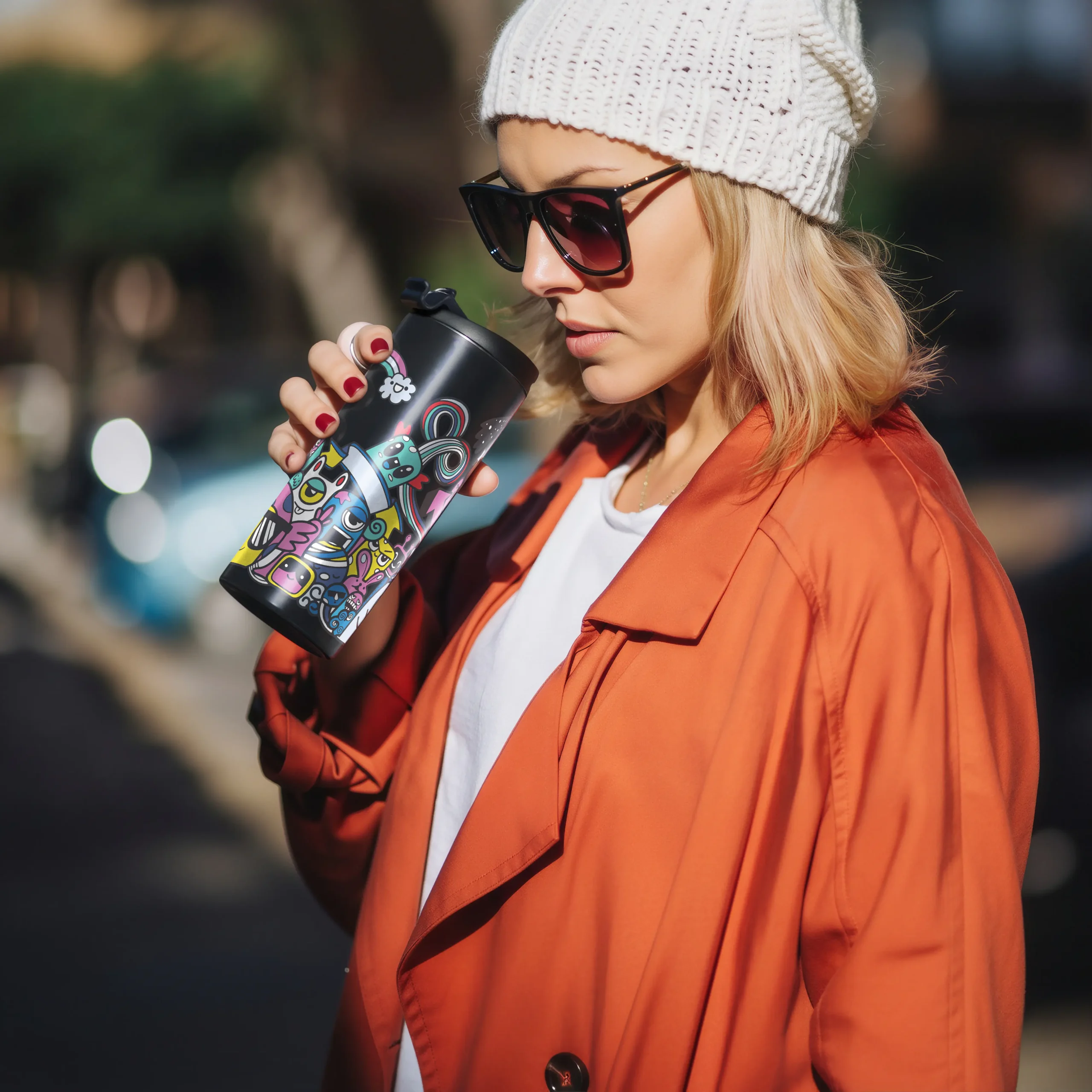 Dubbelwandige 100% lekvrije thermobeker met een erg groot rondom drukoppervlak. Door de lekdichtheid is het uitermate geschikt om mee te nemen in een tas.