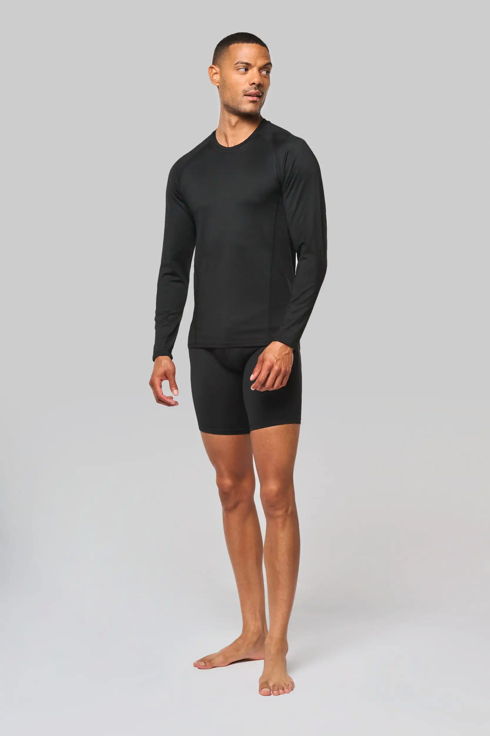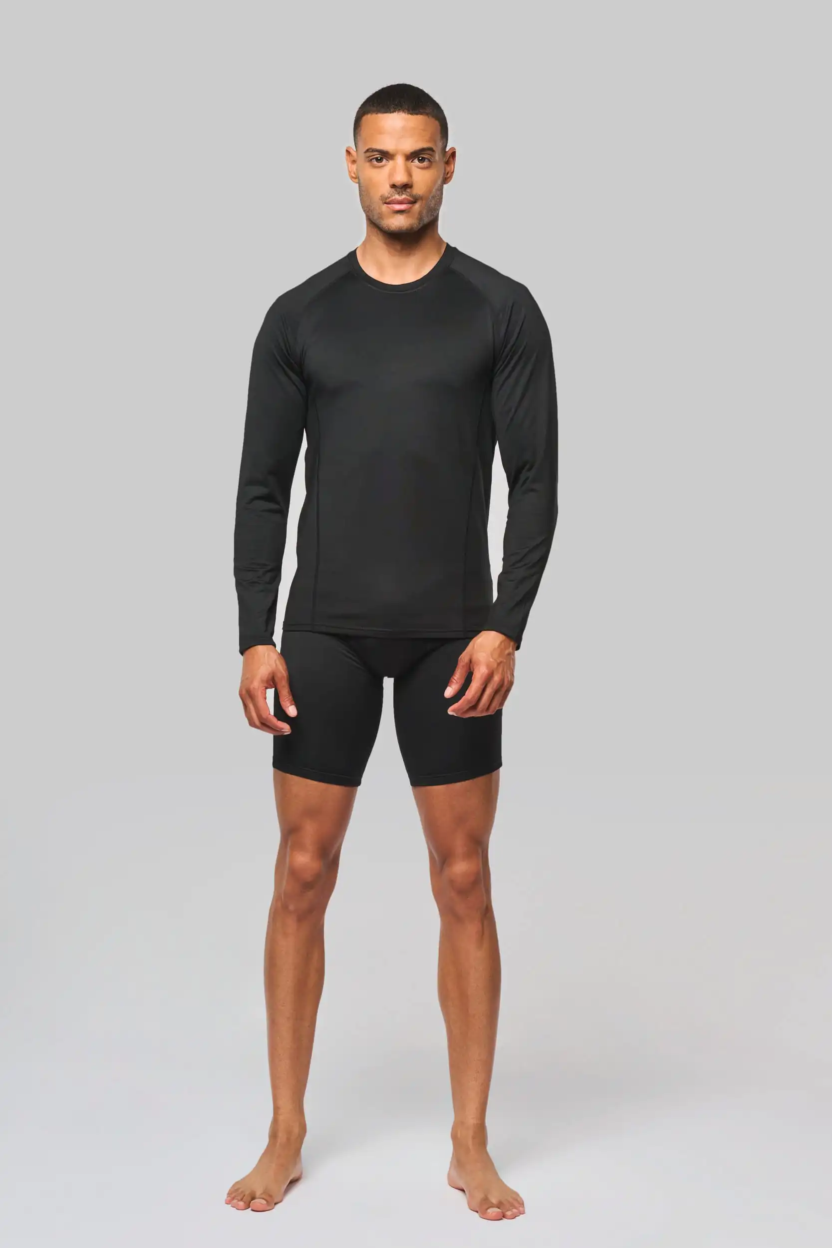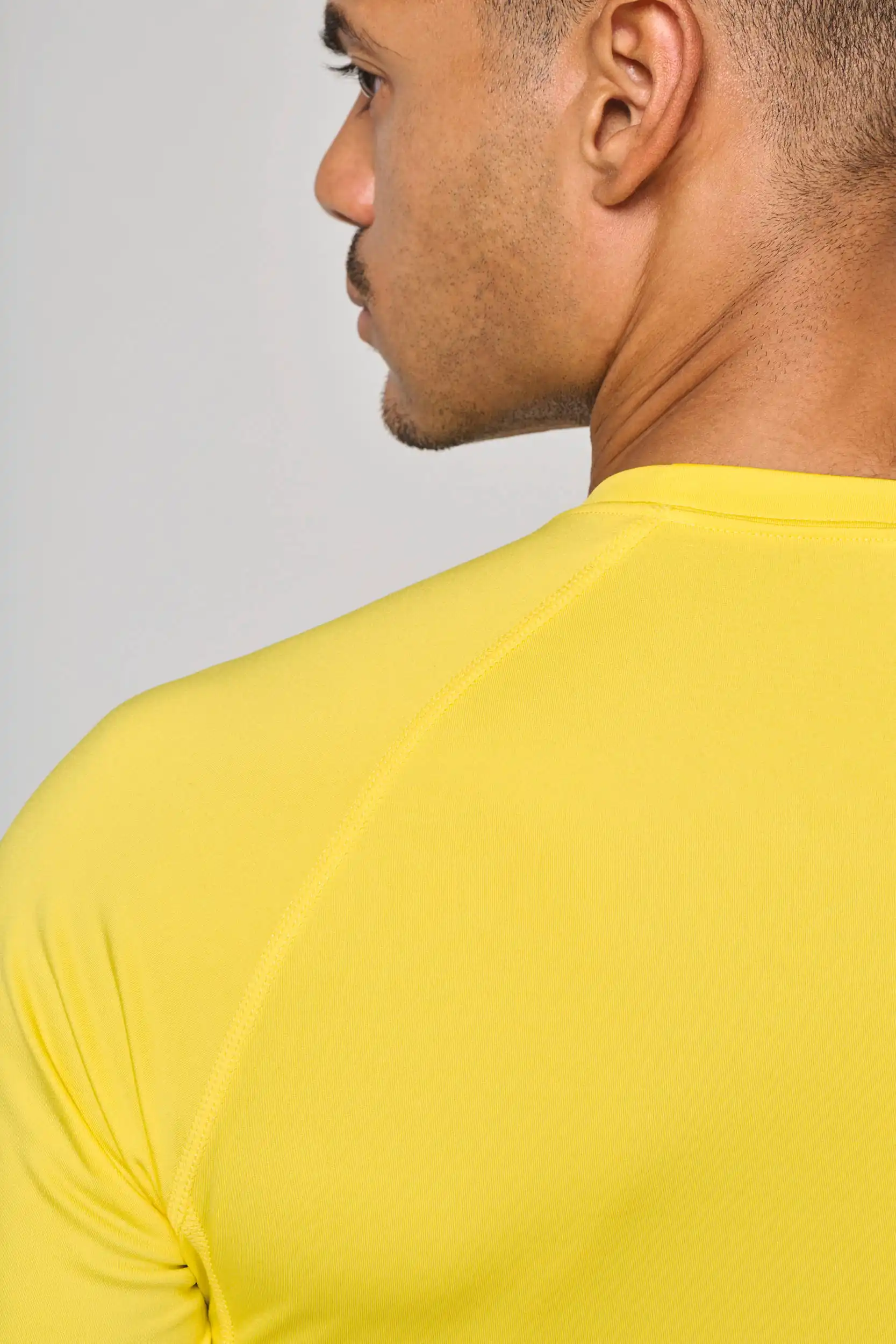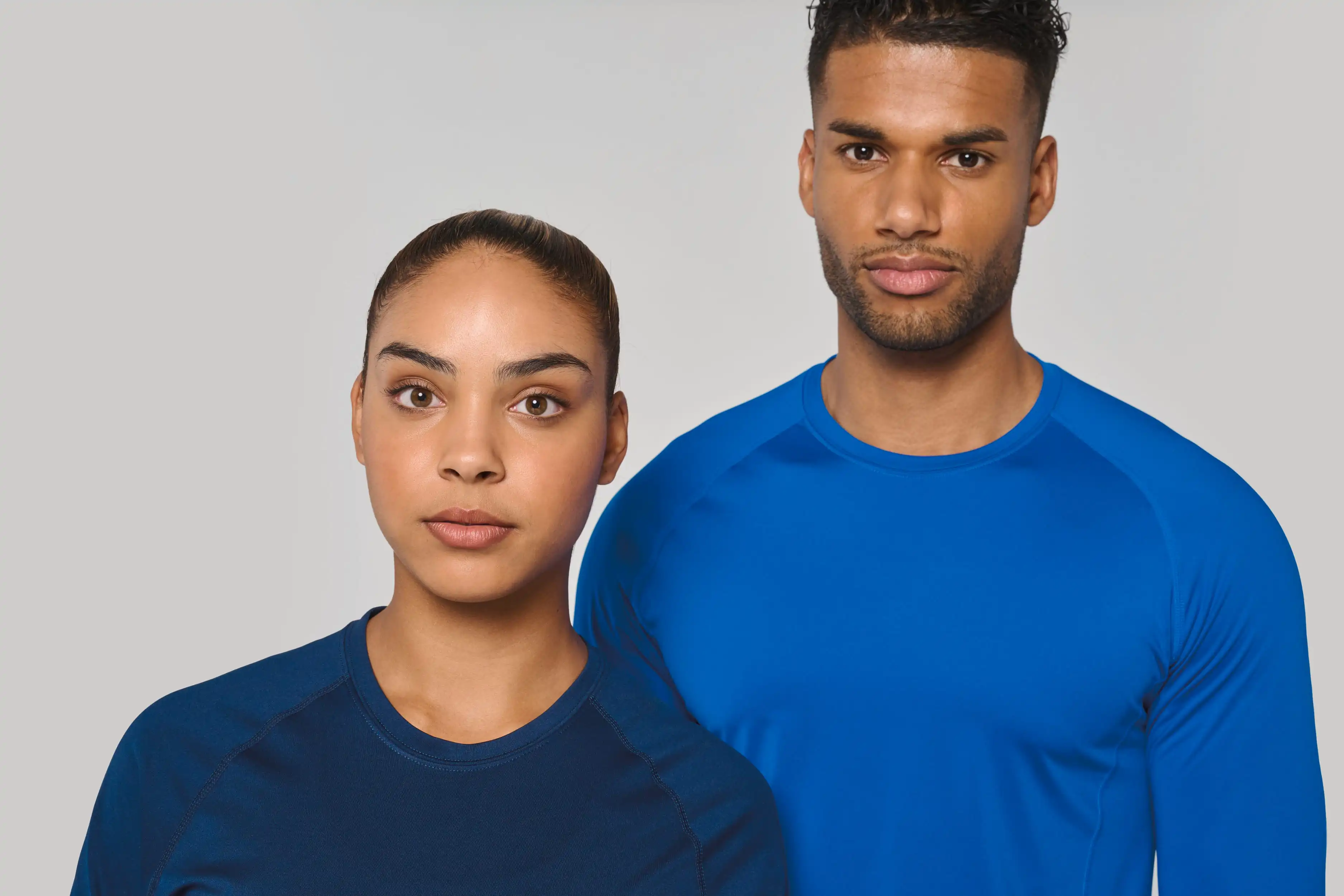 88% polyester / 12% elasthan. Ronde hals. Overstiksels toon op toon. Afwerking met dubbele stiksels.
