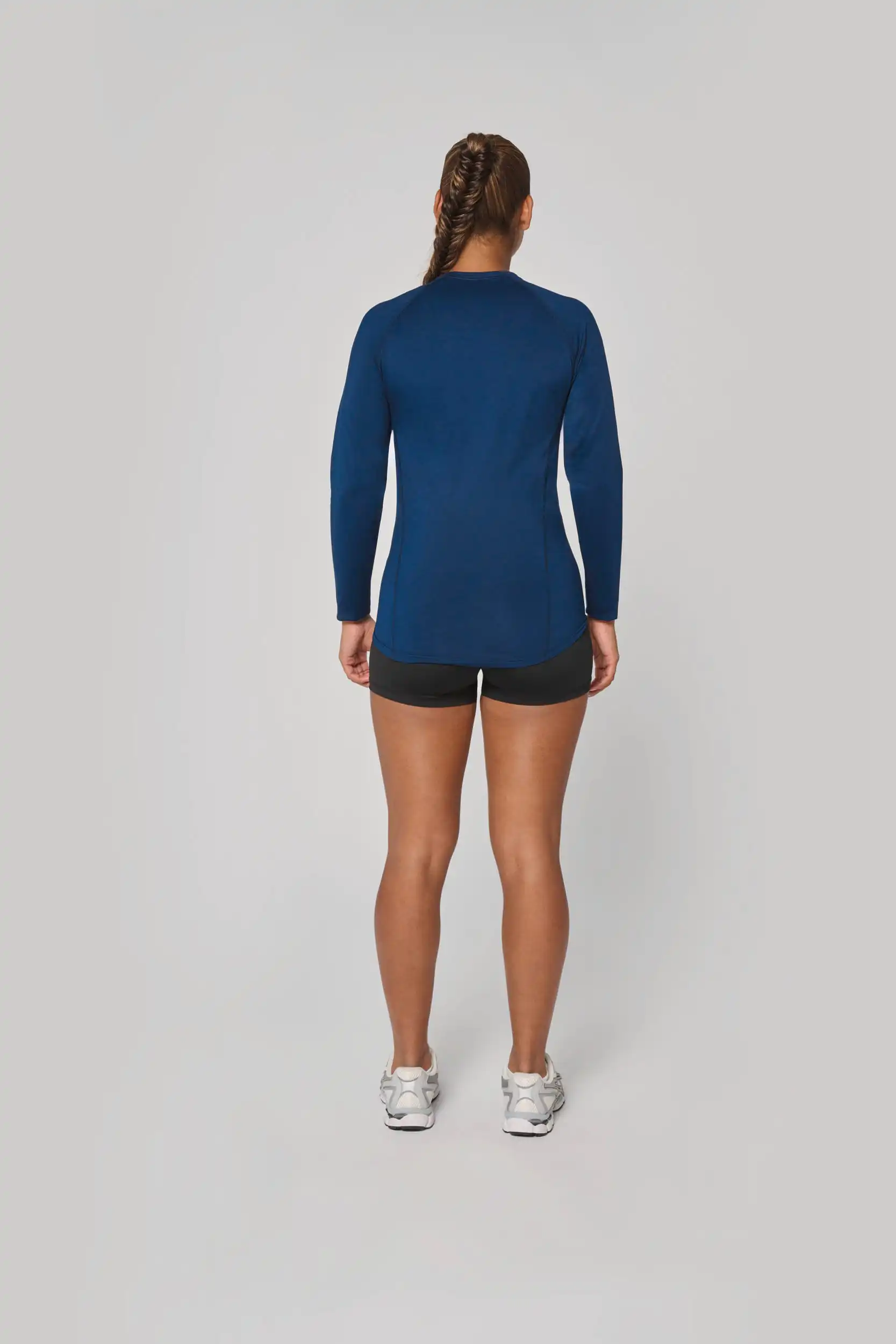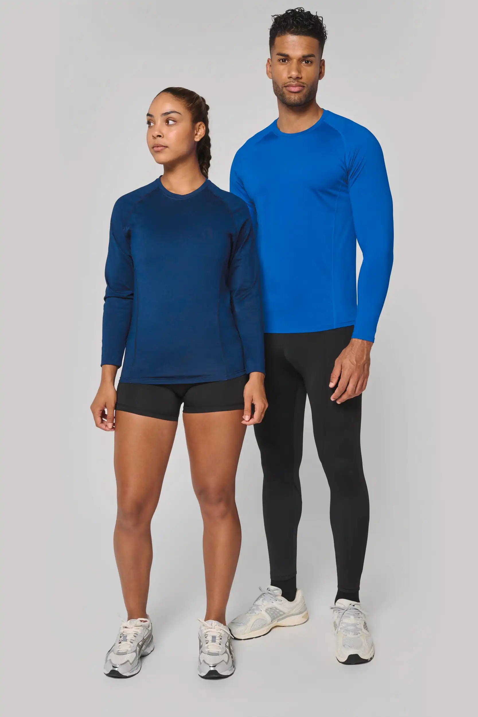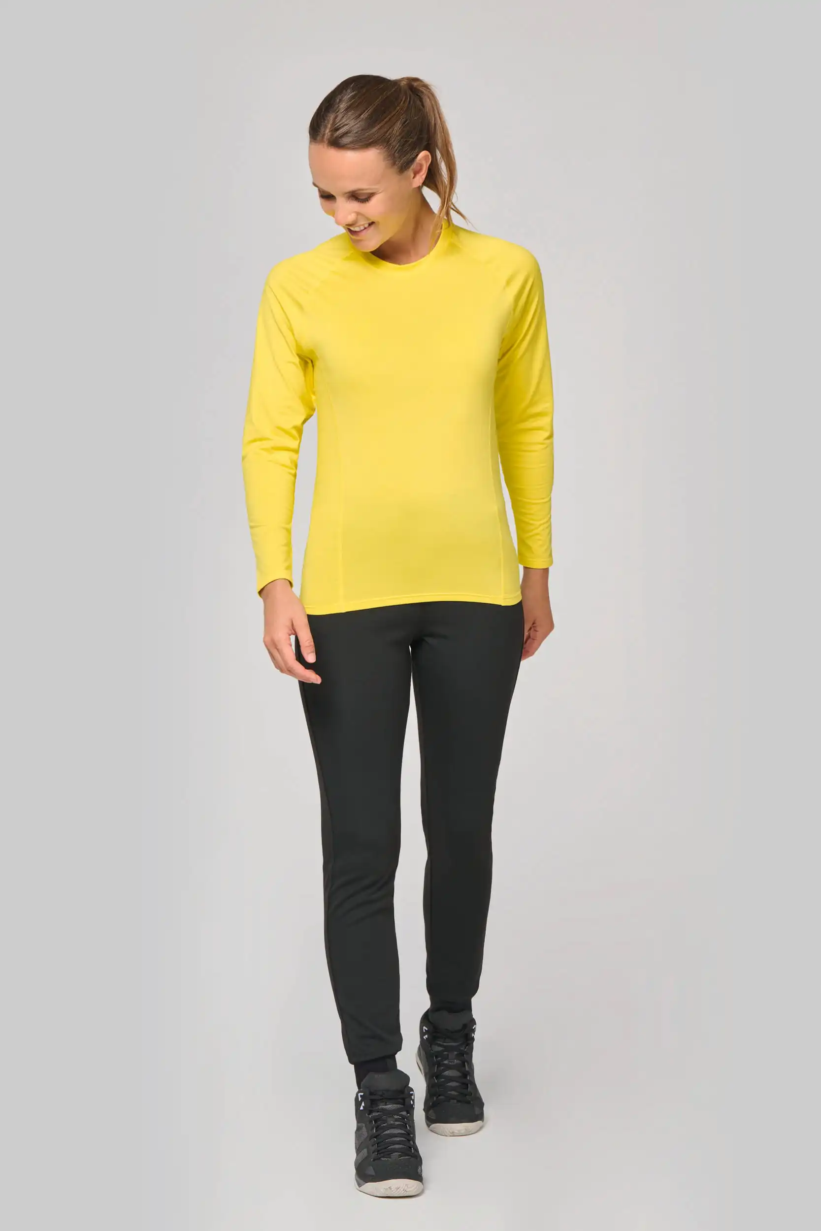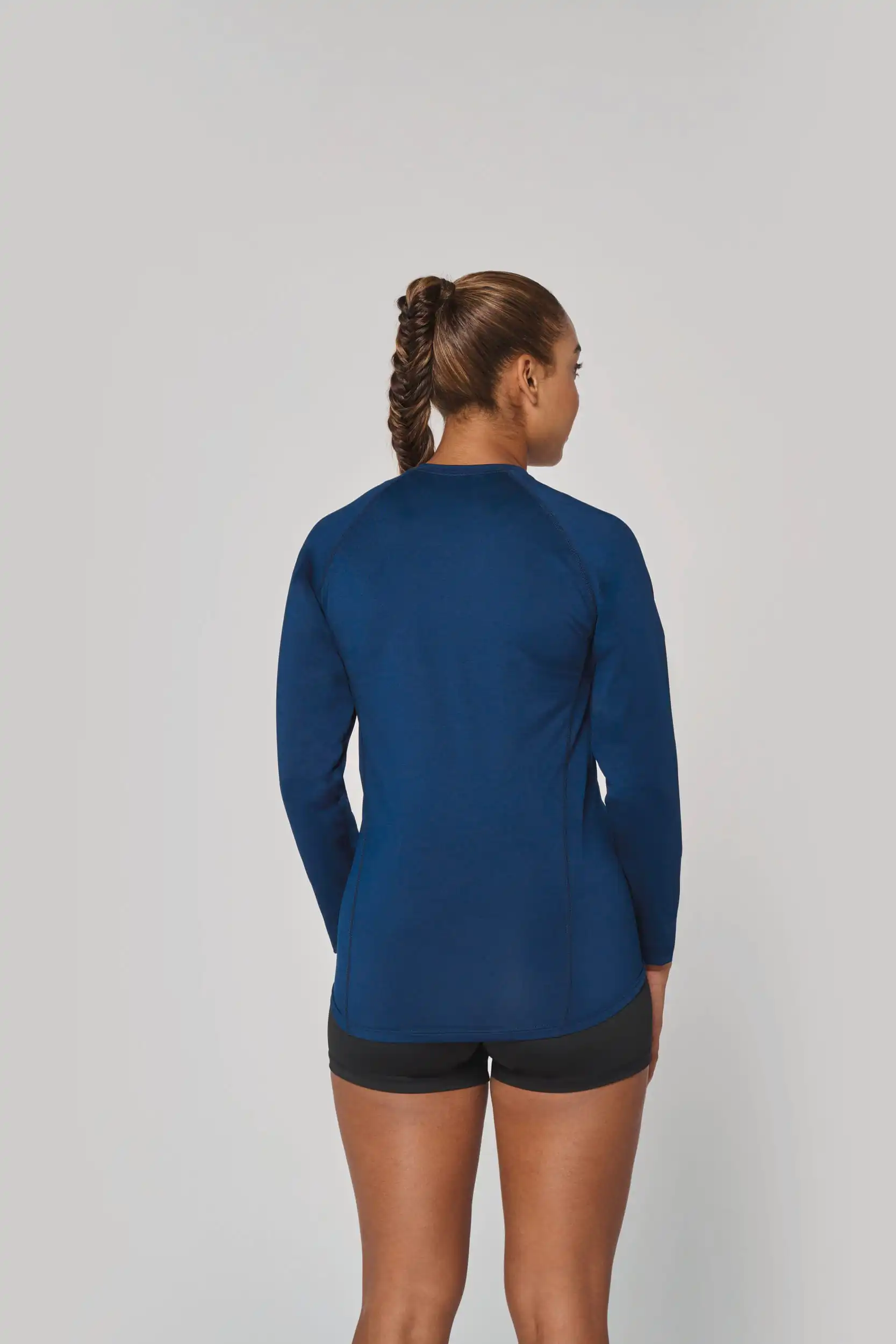 88% polyester / 12% elasthan. Ronde hals. Overstiksels toon op toon. Afwerking met dubbele stiksels.