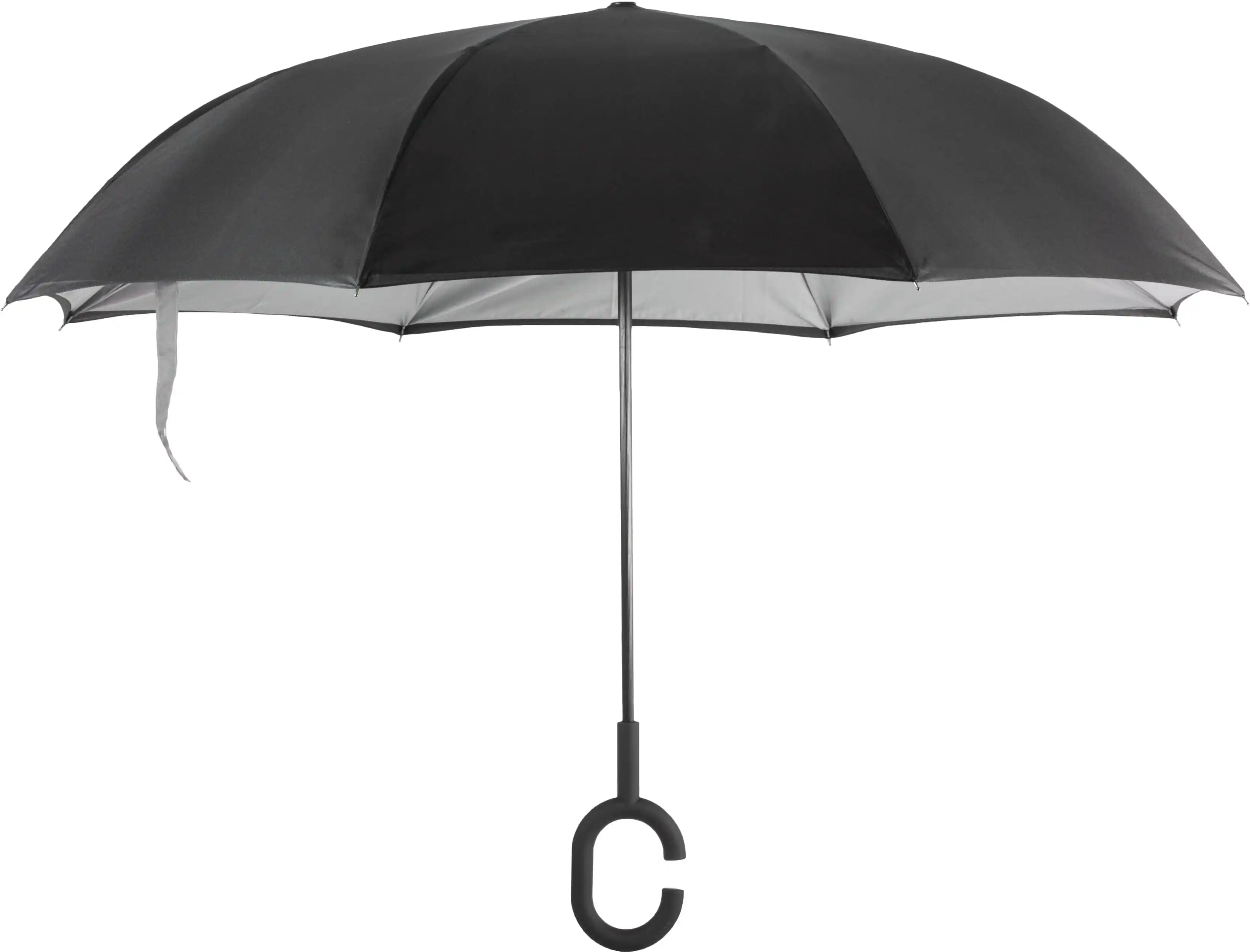 Transparante paraplu 23 inch (58.5 cm) van polyolefine elastomeer, gaat automatisch open, zwartmetalen baleinen, 8 mm dikke metalen stok, punten en rond handvat van polypropyleen.
