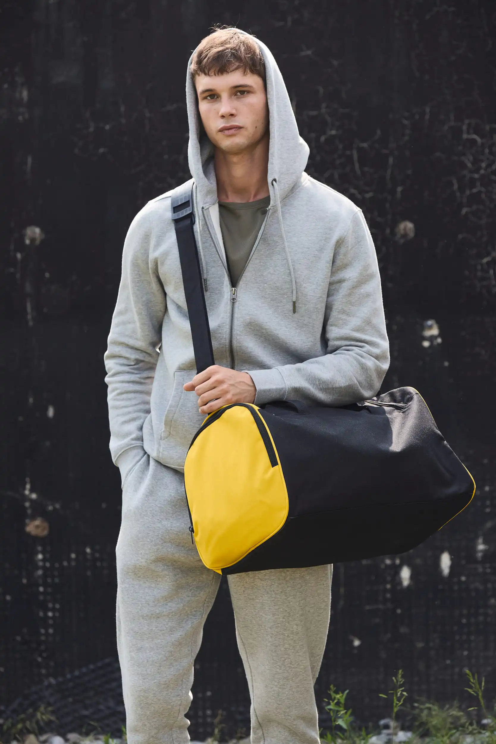 100% polyester. Zijpaneel met contrasterende ritssluiting en binnenvak voor schoenen. Groot hoofdvak met volledige opening via de bovenkant en dubbele ritssluiting. Handgrepen met gewatteerde versteviging voor meer draagcomfort. Afneembare en verstelbare schouderriem met versteviging aan de schouder, die makkelijk is op te bergen in de zak opzij. Eenvoudige personalisatie op de voorpanelen, de zijpanelen en de klep bovenaan. Verkrijgbaar in de maten M en L, voor junior en senior teams.
