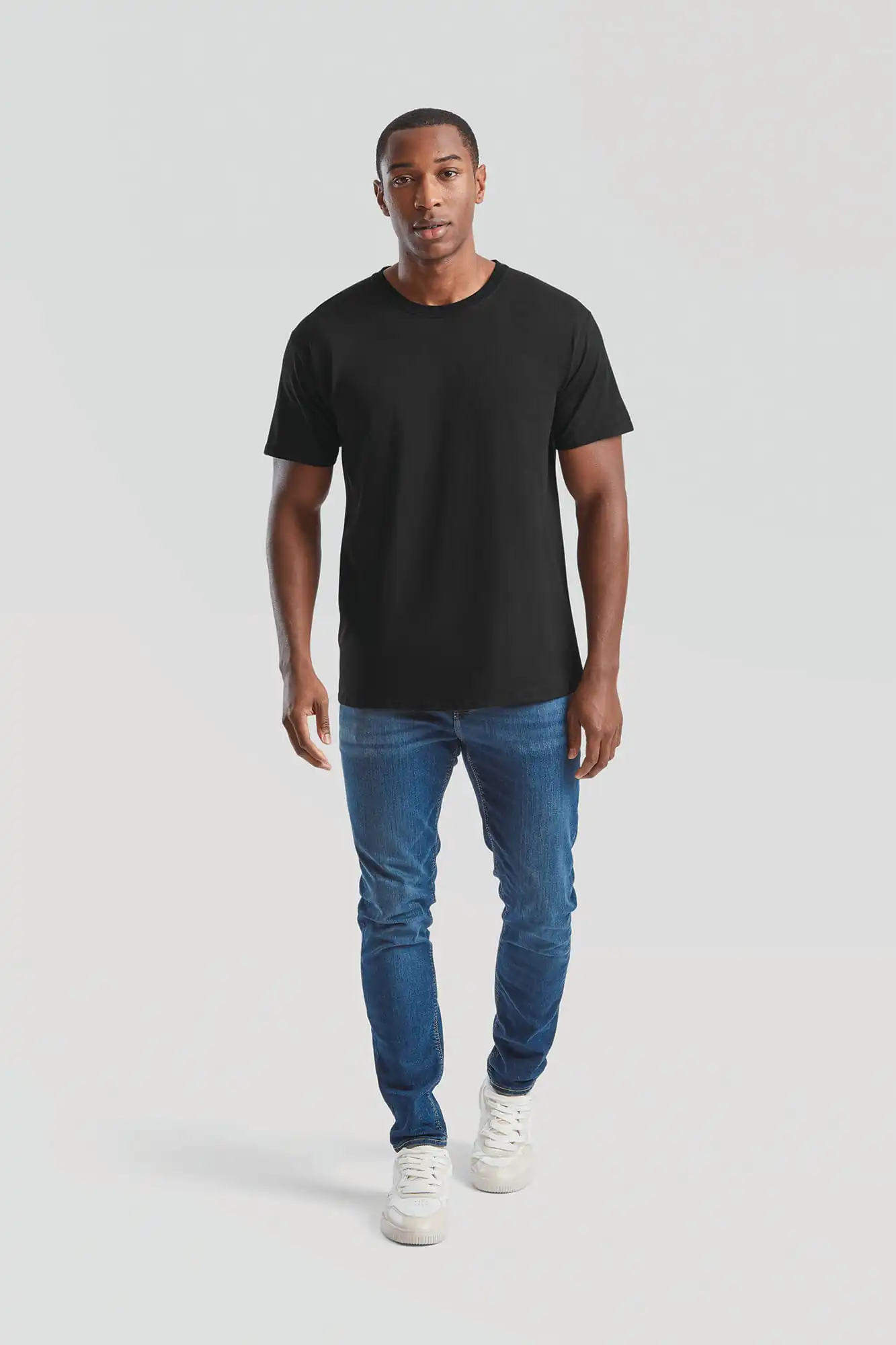 100% katoen (Ash: 99% katoen / 1% polyester, Heather grey: 97% katoen / 3% polyester – andere Heather kleuren 50% katoen / 50% polyester). Ronde hals met katoen en Lycra® en nektape. Tubulaire snit.