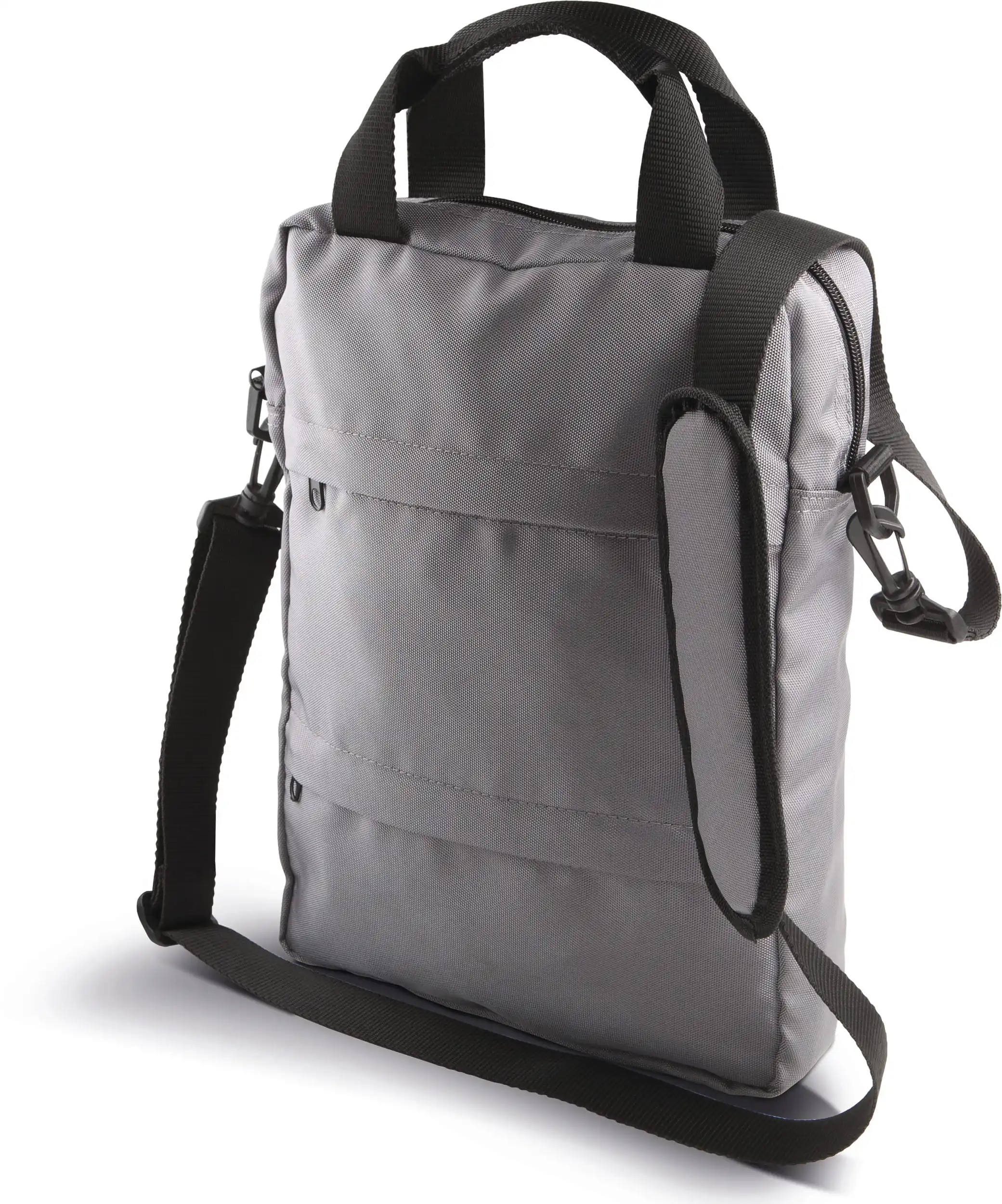 Verticale messenger tas van 900D polyester, 3 voorvakken, afneembare en verstelbare schouderriem.