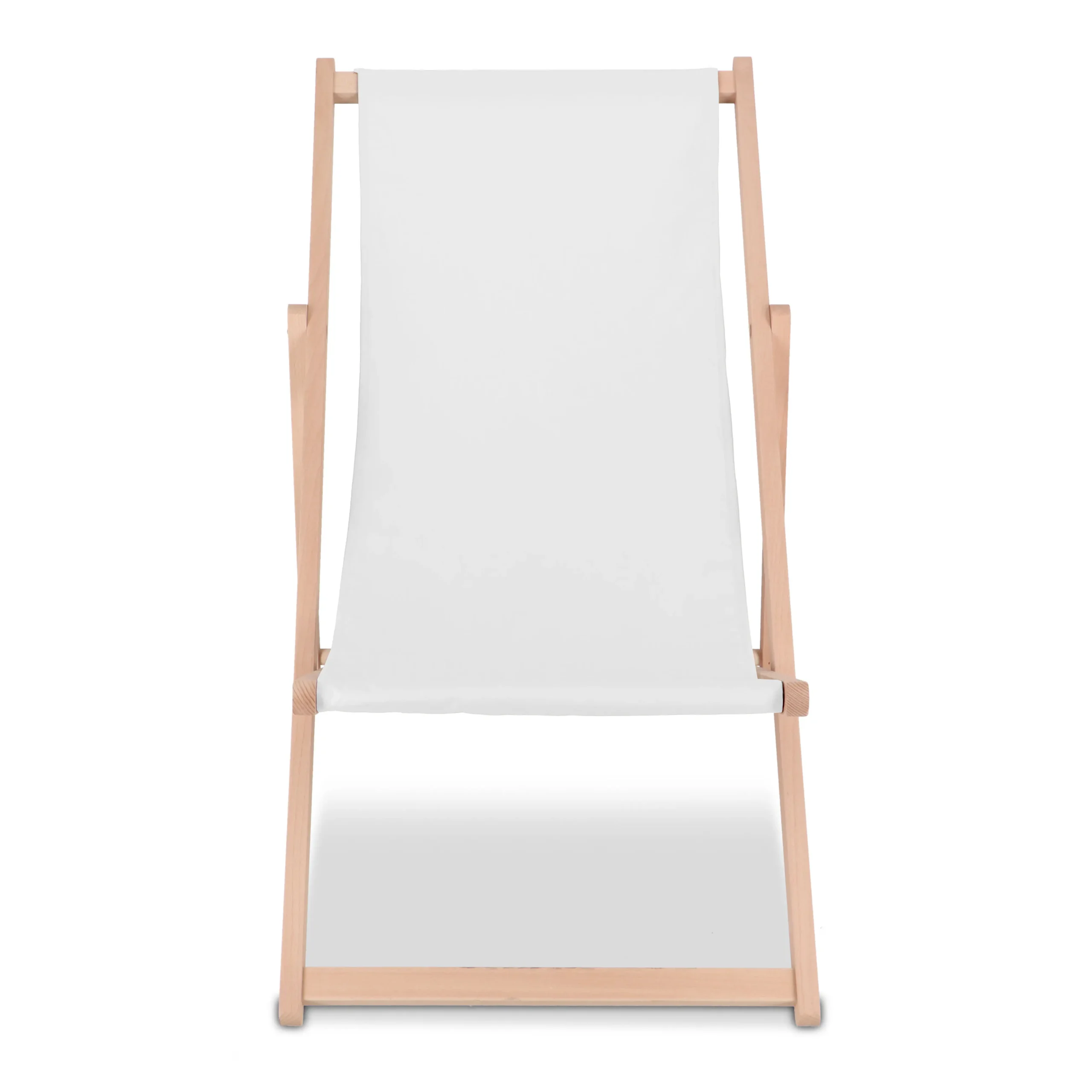 Ontspan in stijl met deze opvouwbare strandstoel met stevig houten frame en volledig bedrukbare polyester stof. Lichtgewicht, draagbaar en verstelbaar voor optimaal comfort. In Europa geproduceerd, draaggewicht 110 kg.