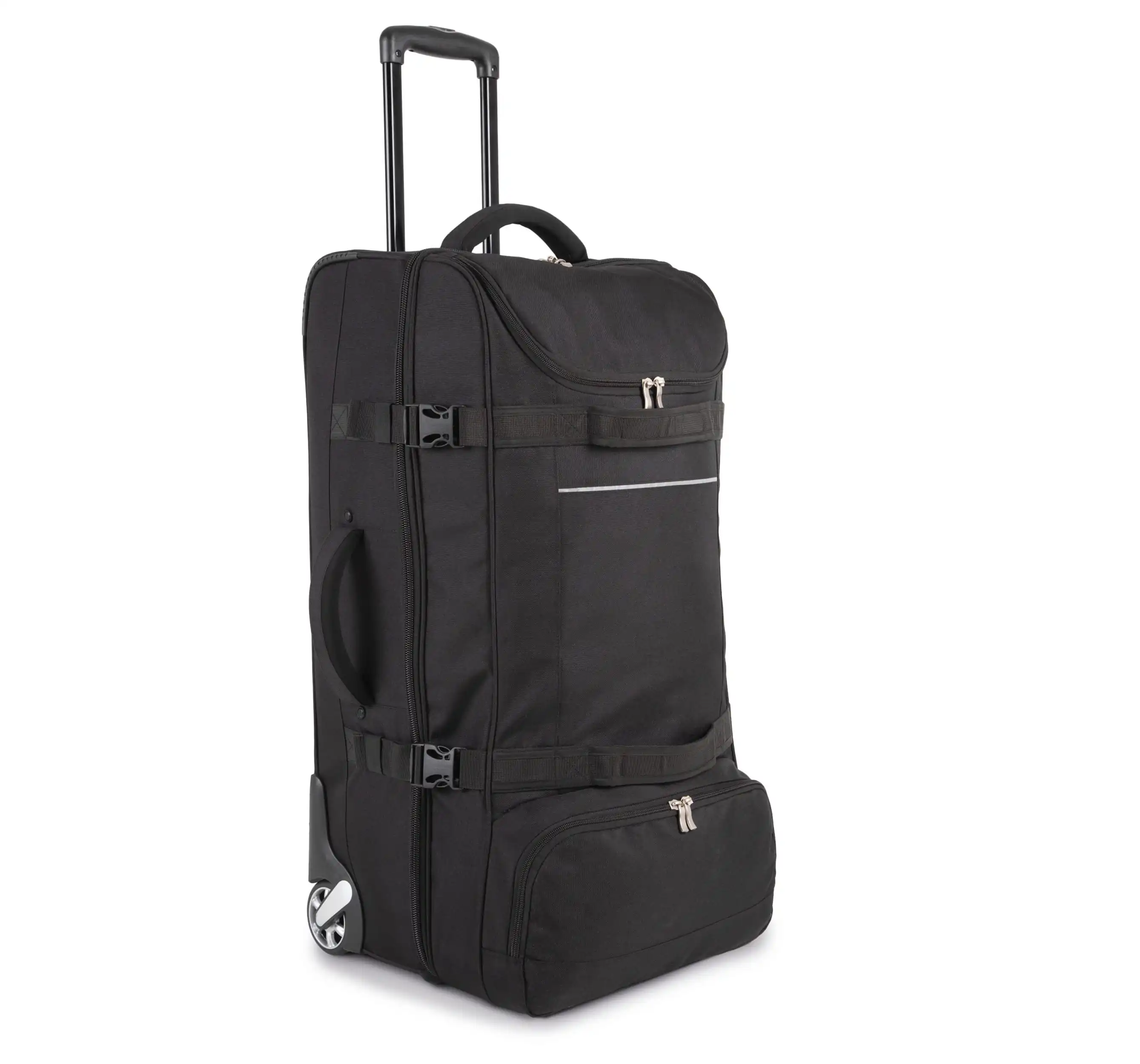 100 % polyester. Portefeuille opening. Opening aan de bovenkant met groot vak voor eenvoudige personalisatie. Drukriemen aan de zijkant. Verstevigingsstaven en bescherming op de achterkant. Zijdelingse handgrepen aan de bovenkant voor eenvoudige hantering, zelfs volgeladen.